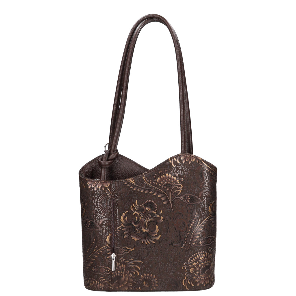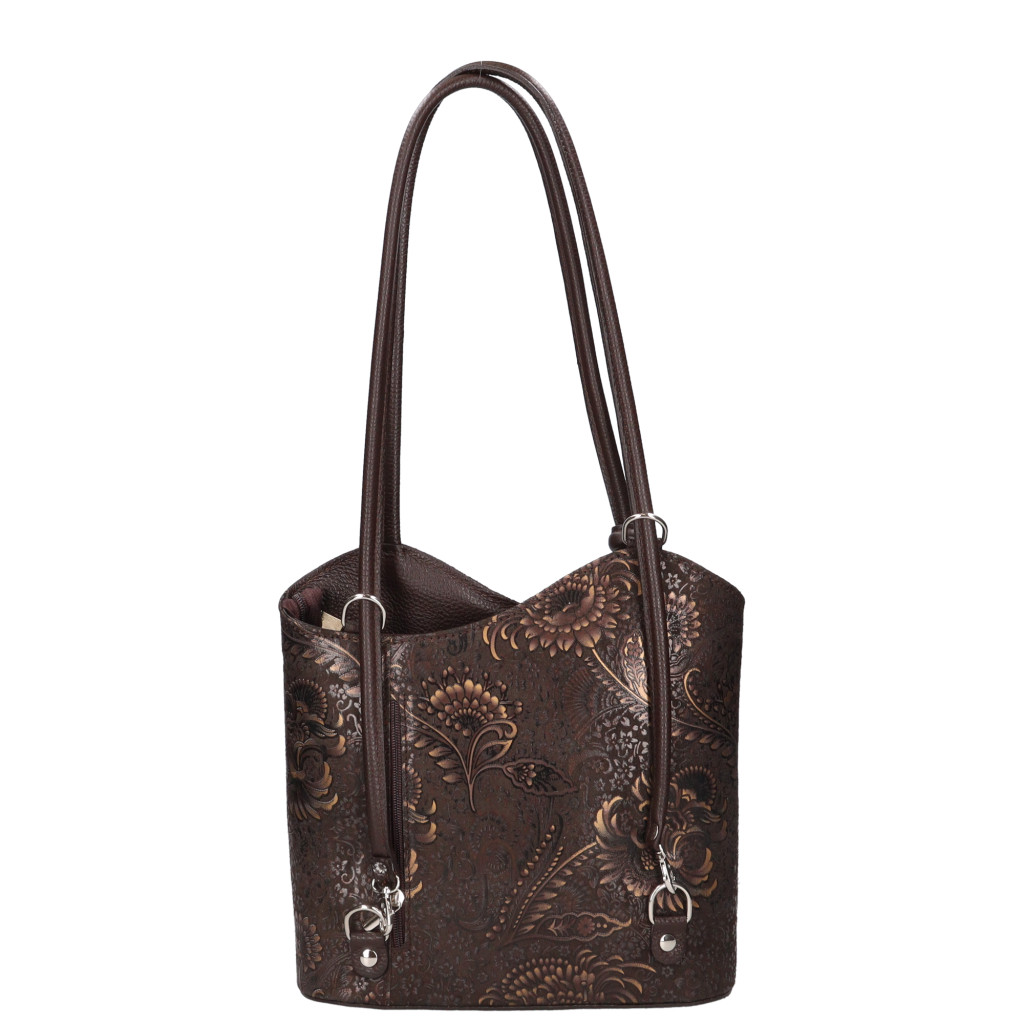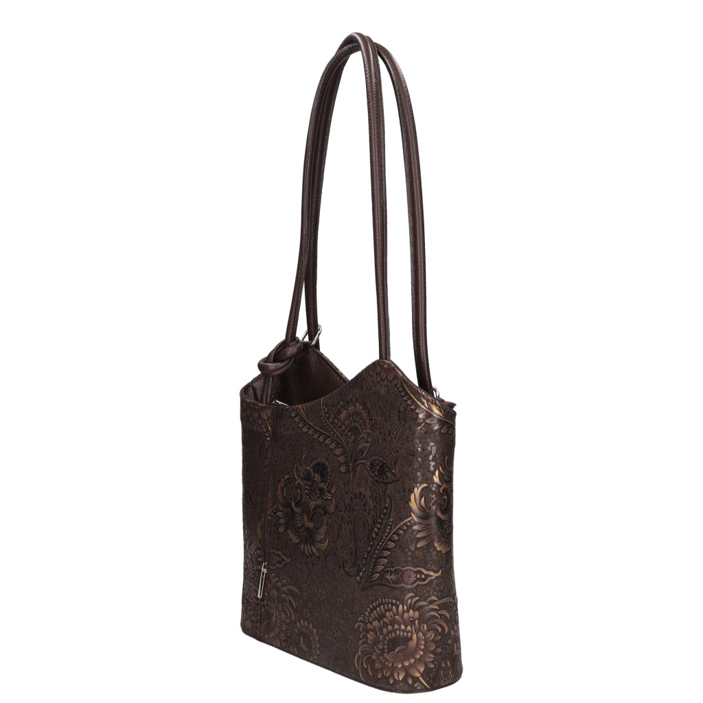 Olasz bőr 238 sötét barna arany virág válltáska és hátizsák
