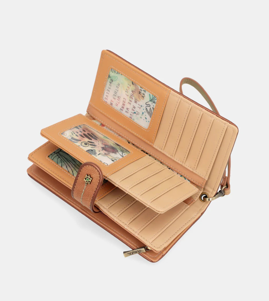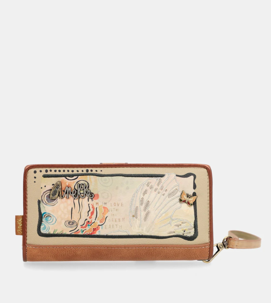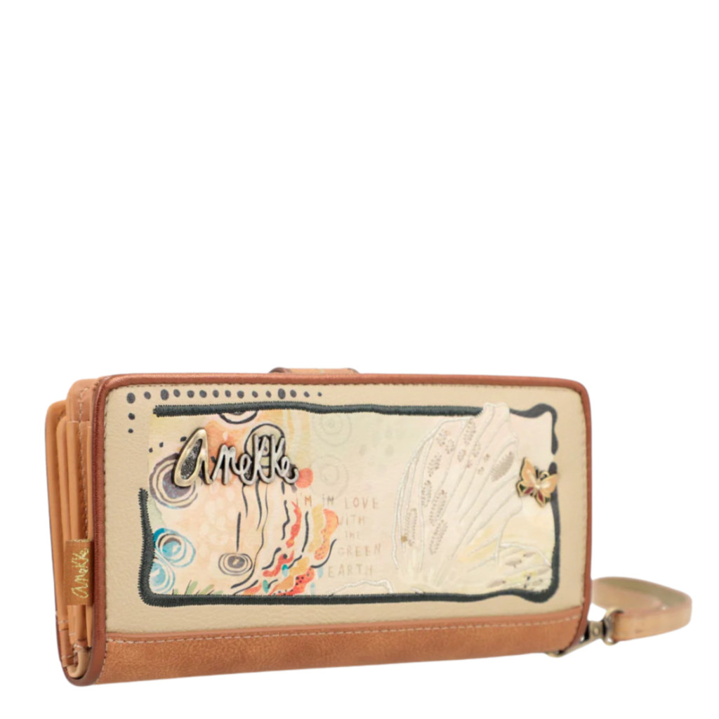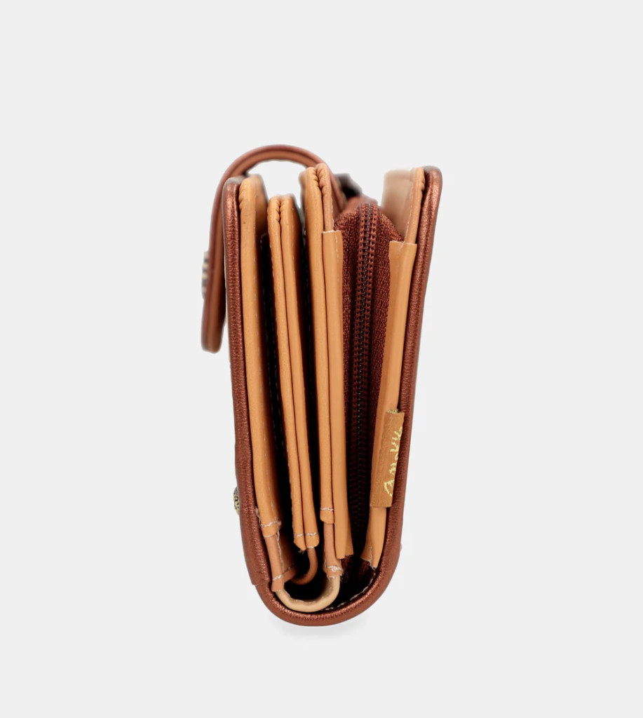 Anekke pénztárcafelül cipzáras osztott aprópénztartó hátulján patentos kártyatartó rekeszbelül 16 db kártyatartóbelül 4 db fényképtartóbelül 1 db papírpénztartó rekeszbelül 6 db rejtett rekeszRFID védelemSzé:18x Ma:10x Mé:3 cm