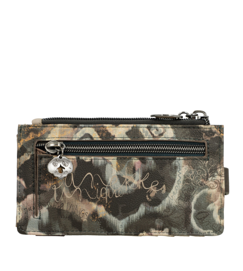 Anekke kártyatartóelején patentos kártyatartó rekeszbelül 9 db kártyatartó belül 1 db fényképtartóközépen cipzáras rekeszbelül egyterűhátulján cipzáras zseb RFID védelemmel ellátottSzé:16x Ma:9x Mé:1 cm