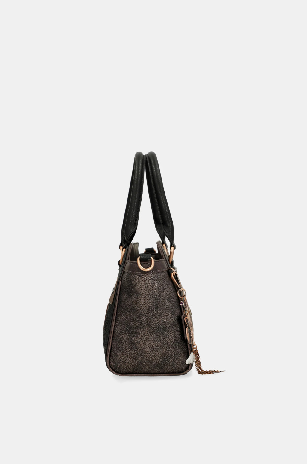 Anekke kézitáska vállpánttalelején cipzáras zsebhátulján cipzáras zsebcipzáras fő rekeszbelseje egyterűbelső zseb és telefontartókézbe fogója: 35 cmlevehető állítható vállpántja: 55-110 cmSzé:34-27x Ma:20x Mé:12 cm