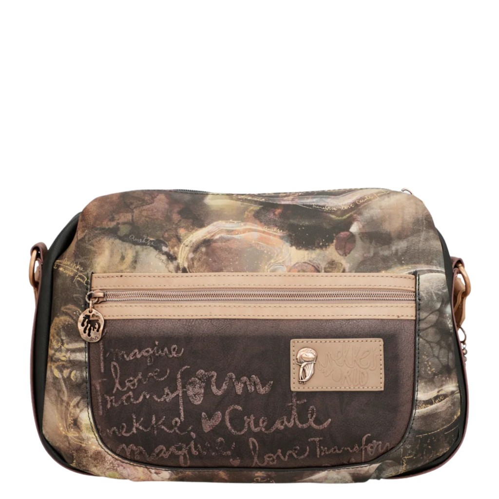 Anekke válltáska és oldaltáskaelején cipzáras zsebcipzáras fő rekesz belseje egyterűbelül cipzáras zsebhátul cipzáras zsebvállon és keresztben is hordhatóvállpántja állíthatóSzé:34x Ma:24x Mé:15 cm