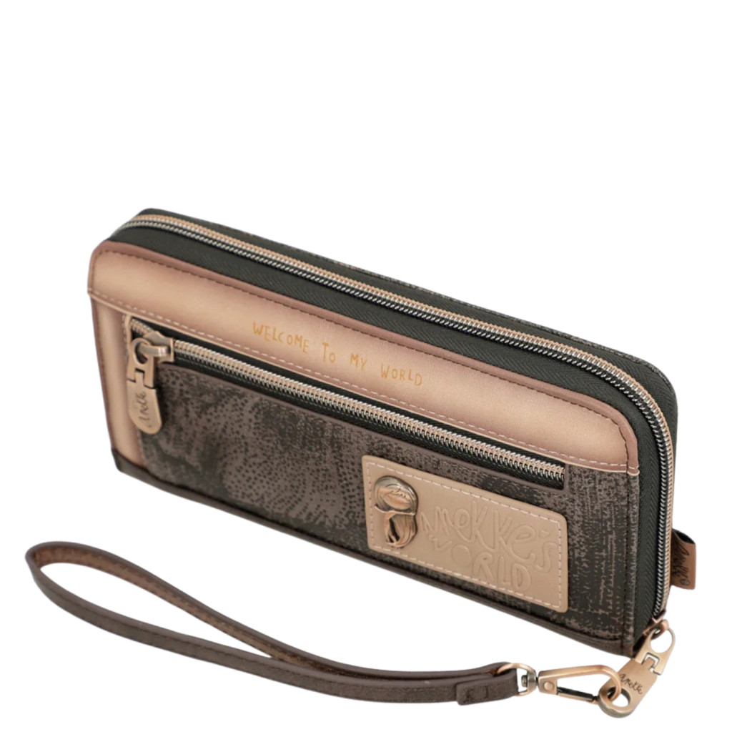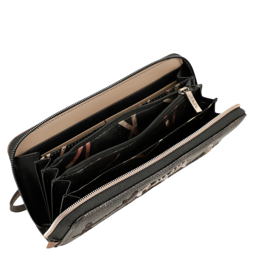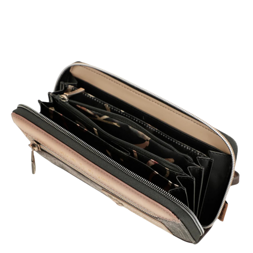 Ez egy nagyméretű pénztárca. Kis kézitáskaként vagy telefonod hordozására is használható. Nagyon kényelmes modell, cipzárral nyílik, bélelt belülről és egy cipzárhúzóhoz rögzíthető fogantyúval rendelkezik. Belül van hely kártyáknak és bankjegyeknek, valamint egy cipzáras zsebbel ellátott rekesz aprópénzeknek a nagyobb kényelem érdekében.