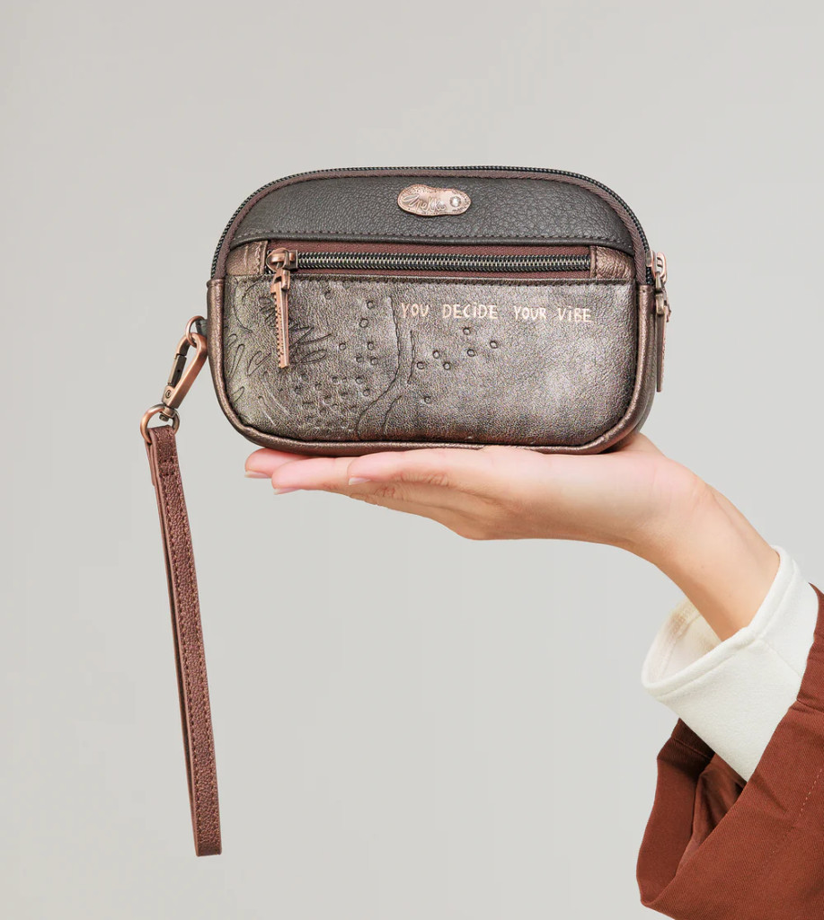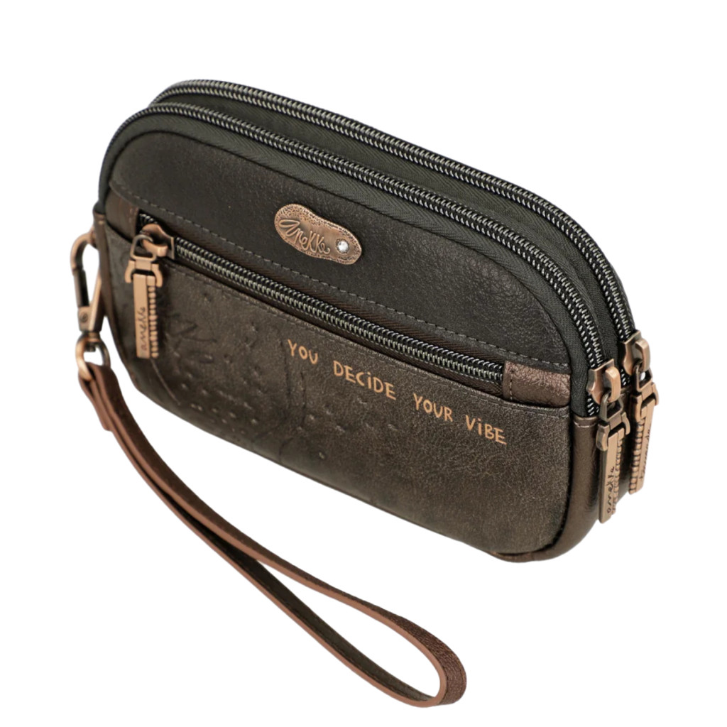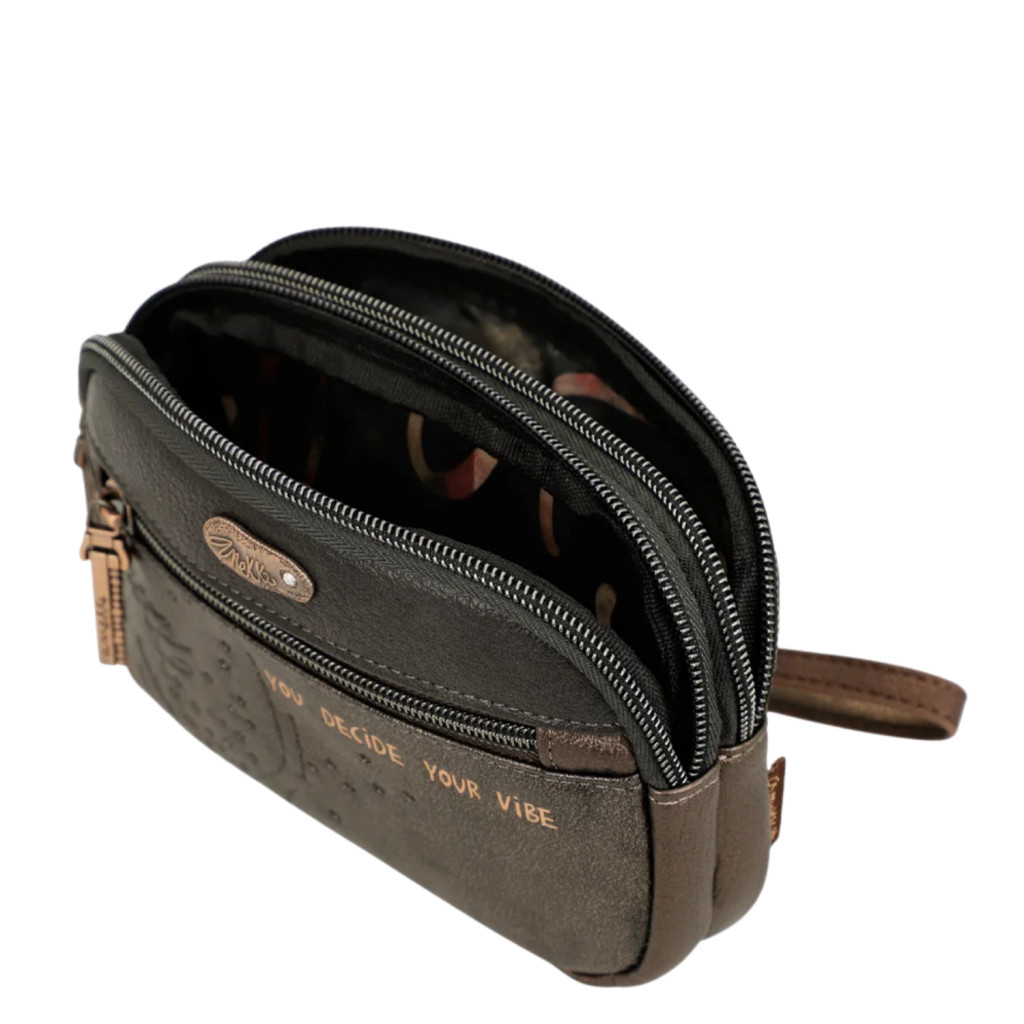 Az Anekke Dreamverse egy kollekció, amelyet a Föld középpontjába vezető képzeletbeli utazás ihletett. A kaland elkezdéséhez mindössze annyi a dolgod, hogy élesítsd az érzékeidet és megtaláld a kollekció új kedvencedet. Készen állsz? Az utazás most kezdődik! Ez a termék az Anekke Dreamverse Wings termékcsaládjának része. Ez a kollekció legelegánsabb kapszula alakú darabja, két színben (bézs és sötétbarna) kapható, az elülső részén pedig megkövesedett szárnyak formái láthatók. Az egyedi részletek, mint például az arany és a fémes pöttyök, elrepítenek ebbe az univerzumba, ahol kedvenc kiegészítőiddel egyúttal a belső éneden is keresztülutazhatsz.