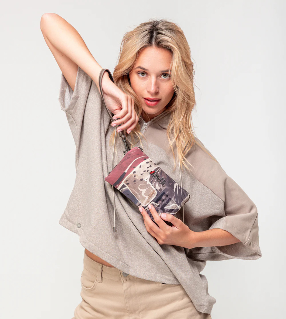 Anekke oldaltáskahárom rekeszescipzáras fő rekeszkicsi táskavállon és csuklón hordhatóvállpántja állíthatóSzé:21x Ma:13x Mé:5 cm