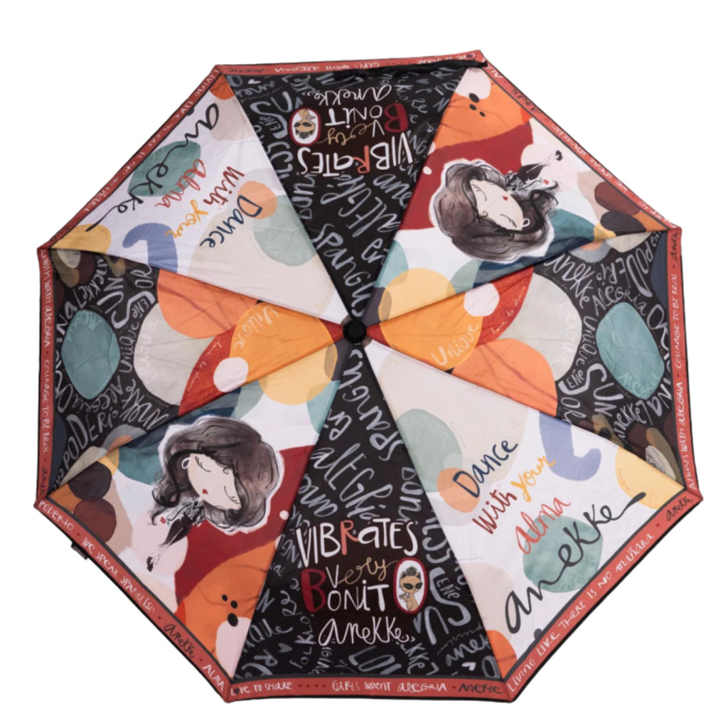 Anekke automata esernyőösszecsukhatóösszecsukva kis tartójába helyezhetőkézbarát műanyag fogantyúátmérője kinyitva: 100 cmanyaga: poliészter, fém