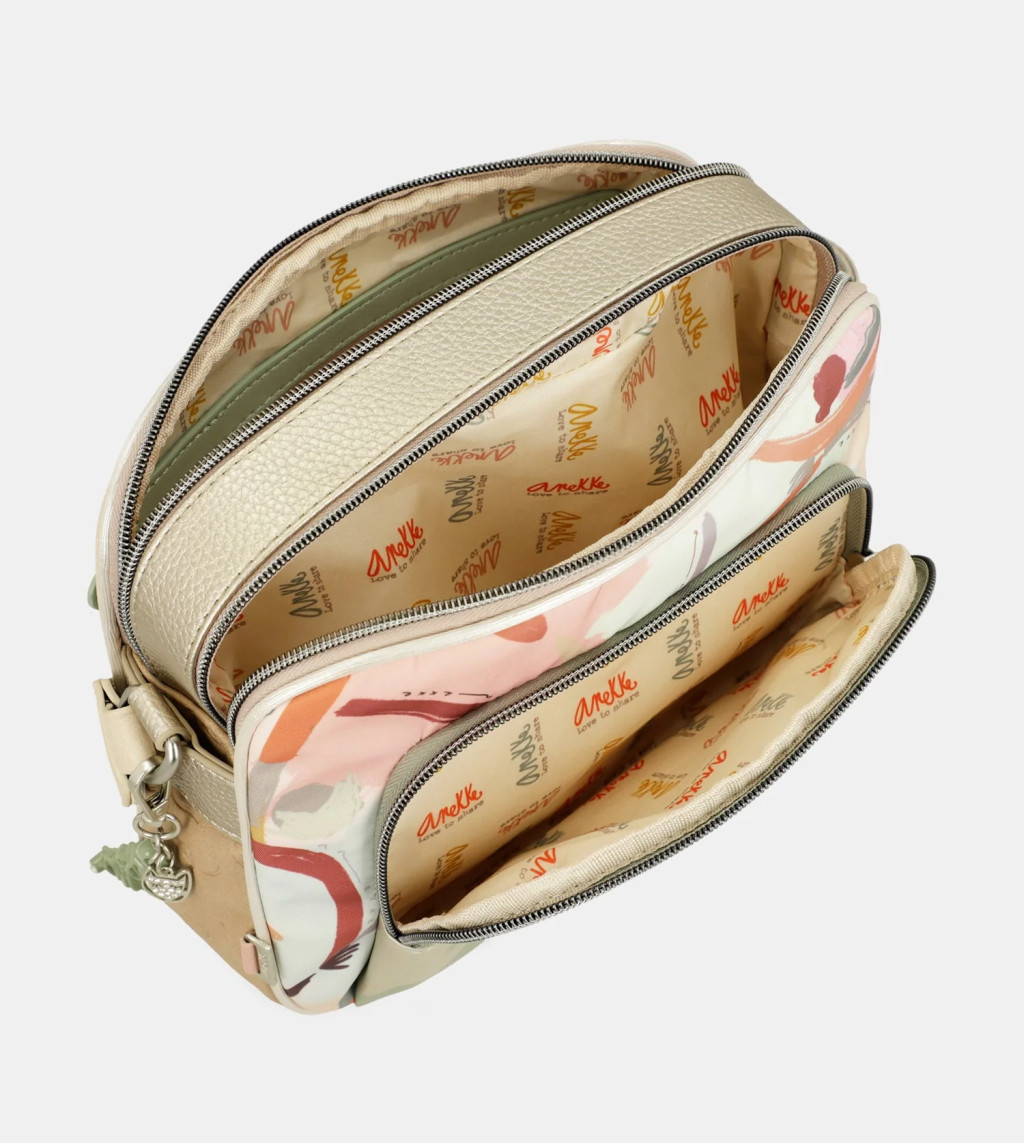 Ez az eredeti termék az Anekke Alma kollekció része, színes nyomatának köszönhetően bármilyen megjelenéshez párosítható. Sportos stílusa és rugalmas anyaga kétségtelenül kollekciója legkényelmesebb darabjává teszi. Ez a crossbody táska közepes méretű és cipzárral záródik. Belső béléssel, valamint zsebekkel rendelkezik a nagyobb kényelem érdekében. Kívül zsebekkel rendelkezik, elöl és hátul is. A fogantyú állítható és a kívánt méretre szabható. Készen állsz egy új kedvenc kiegészítőre? Tedd a kosaradba, és szerezd be a sajátod most!