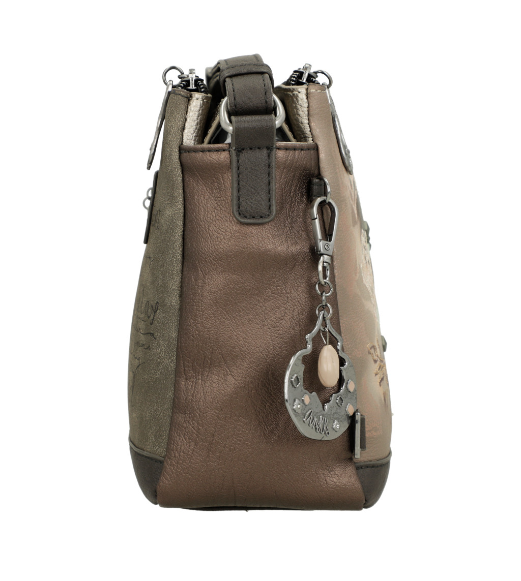 Anekke oldaltáskahárom cipzáras fő rekeszbelsejük egyterűbelül cipzáras zsebhátulján cipzáras zsebvállon hordhatóvállpántja állíthatóSzé:29x Ma:20x Mé:10 cm