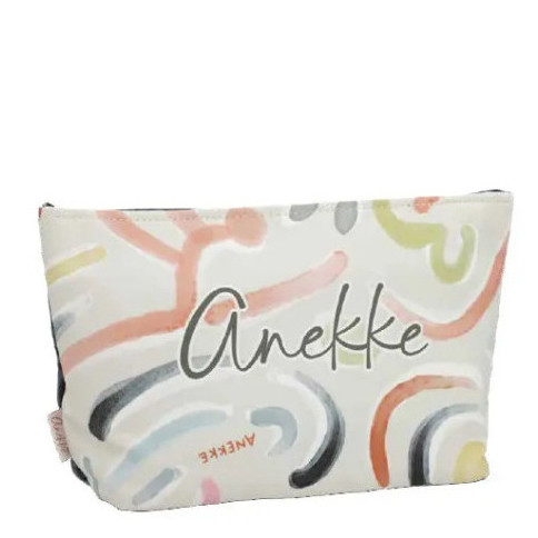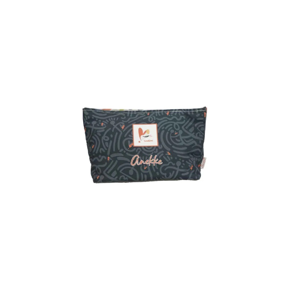 Anekke nagy méretű kozmetikai táskafelül cipzárral nyíliknyomott bélése vankézi fogantyúval rendelkezik