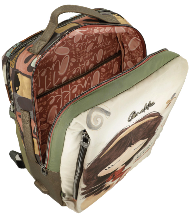 Anekke hátizsák és fedélzeti táskaelején cipzáras zsebkettő cipzáras fő rekeszbelseje egyterűbelül cipzáras zseb és mobiltartóbelül laptop tartó rekeszbőrönd fogojára huzhatóvállpántja állíthatóUSB csatlakozó az oldalánSzé:30 x Ma:43 x Mé:17 cm