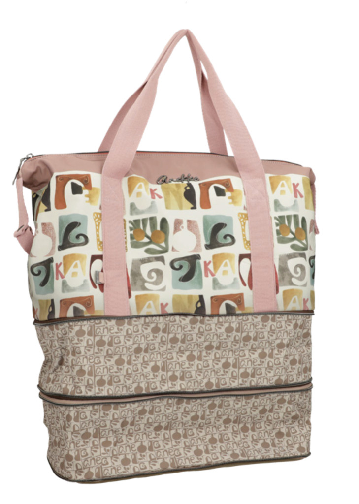 Anekke utazótáskacipzáras fő rekeszbelseje egyterűbelül cipzáras zseb és mobiltartóhátulján cipzáras zsebalul cipzárral bővíthetőkézben és vállon hordhatóvállpántja: 55 cmSzé:54x Ma:31-53x Mé:23 cm
