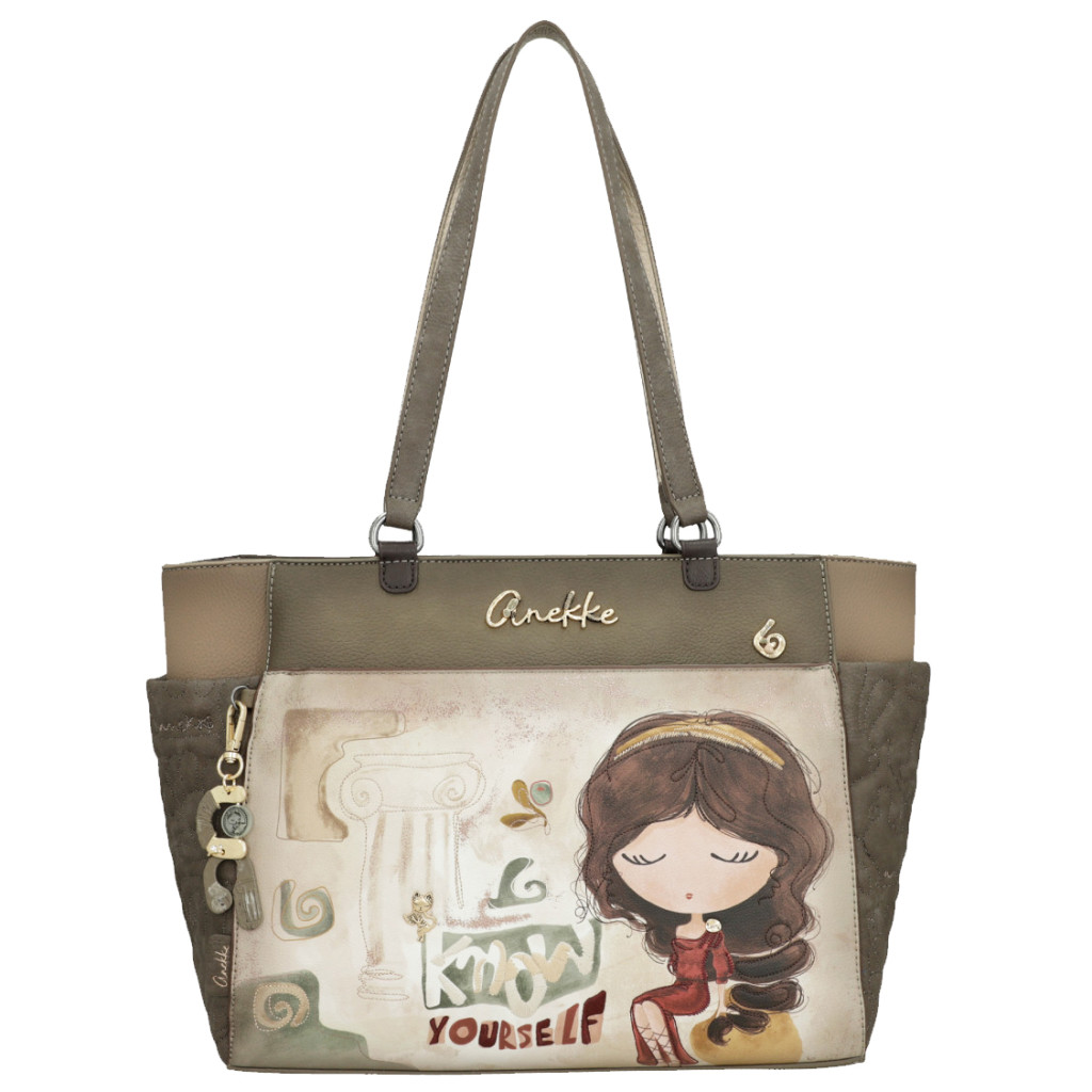 Anekke válltáskaelején és hátulján cipzáras zsebmindkét oldalán nyitott zsebcipzáras fő rekeszbelseje osztottközépen cipzáras rekeszbelül cipzáras zseb és mobiltartóvállon hordhatóvállpántja: 60 cmSzé:41/33x Ma:26x Mé:15 cm
