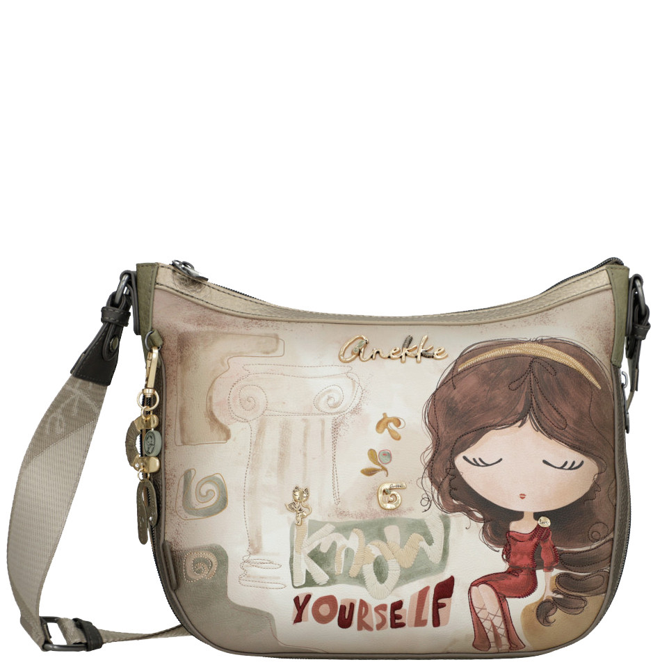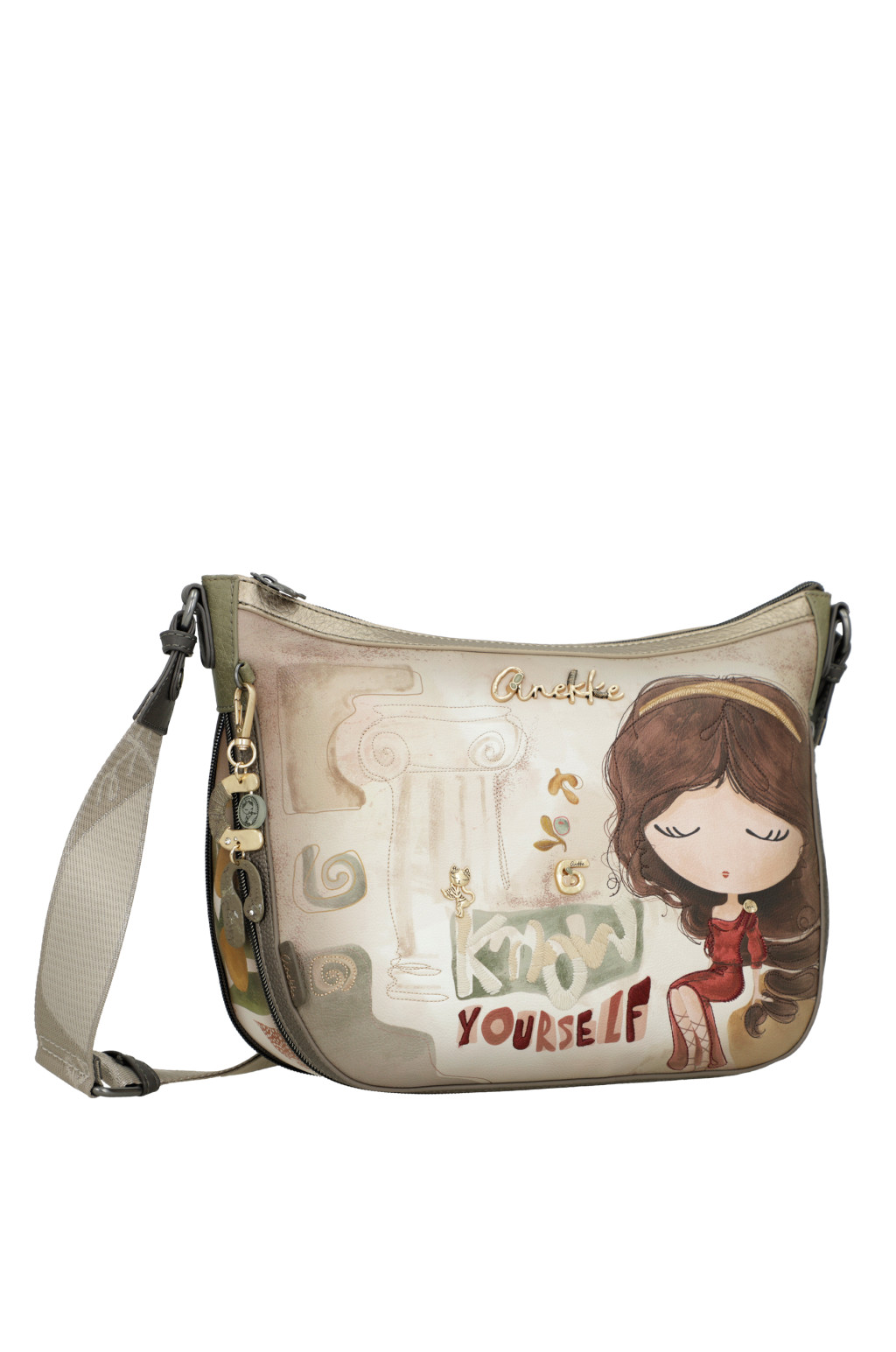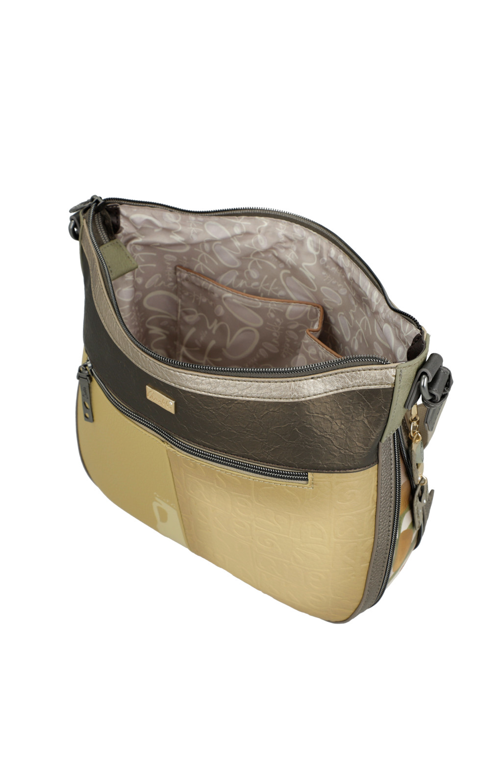 Anekke válltáskaelején és hátulján cipzáras zsebcipzáras fő rekeszbelseje egyterűcipzáras belső zseb és mobiltartóvállpántja: 45 cmvállpántja állítható: 60-120 cmSzé:33-24x Ma:25x Mé:14 cm