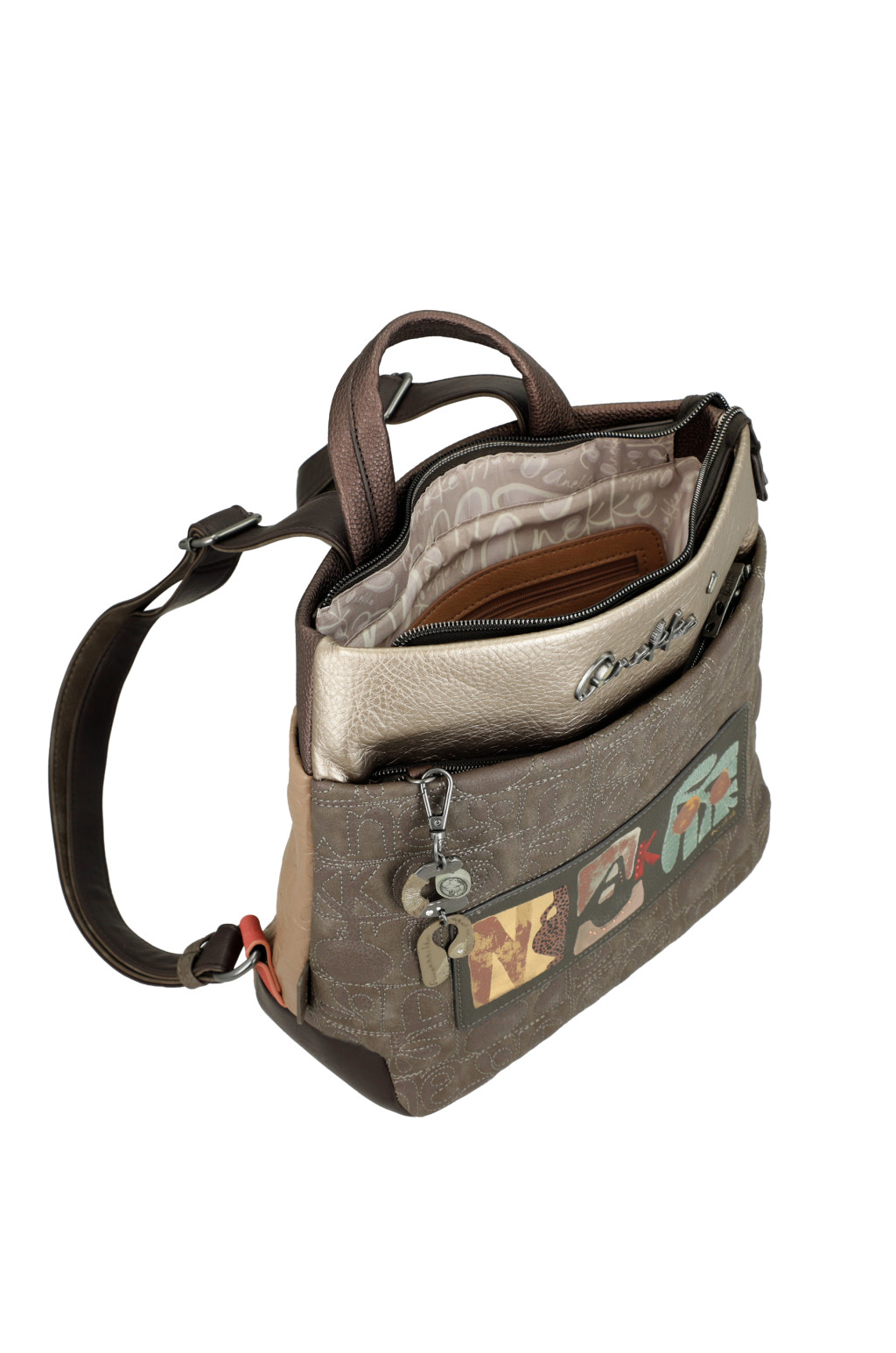 Anekke hátizsákelején cipzáras zsebcipzáras fő rekeszbelseje egyterűbelül cipzáras zseb és mobiltartóvállpántja állíthatóSzé:30x Ma:29x Mé:12 cm