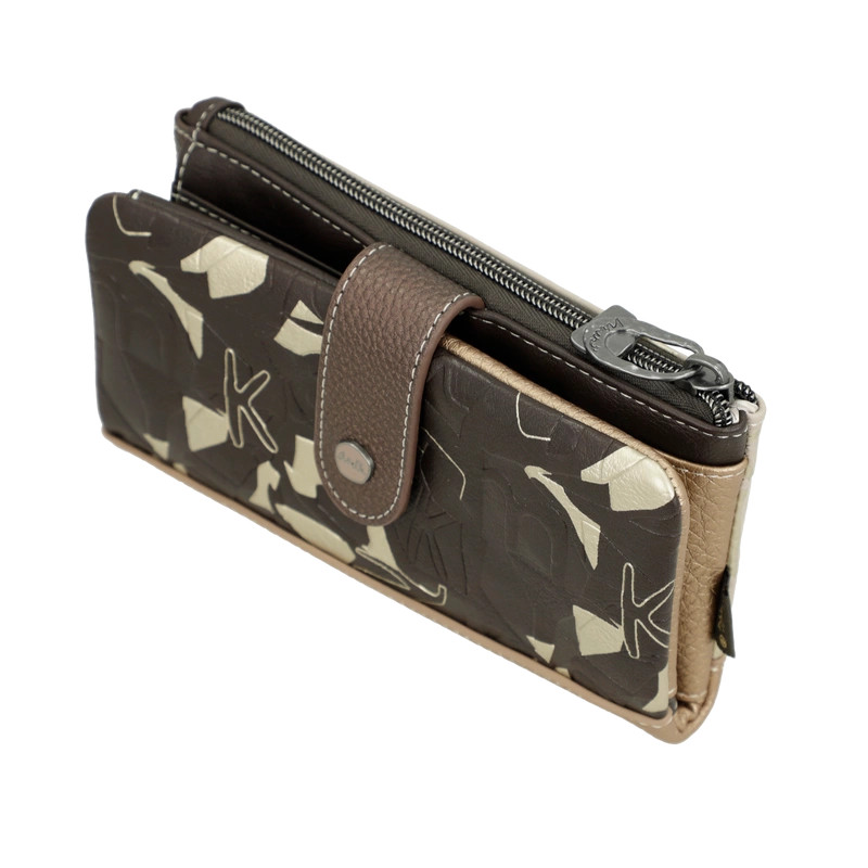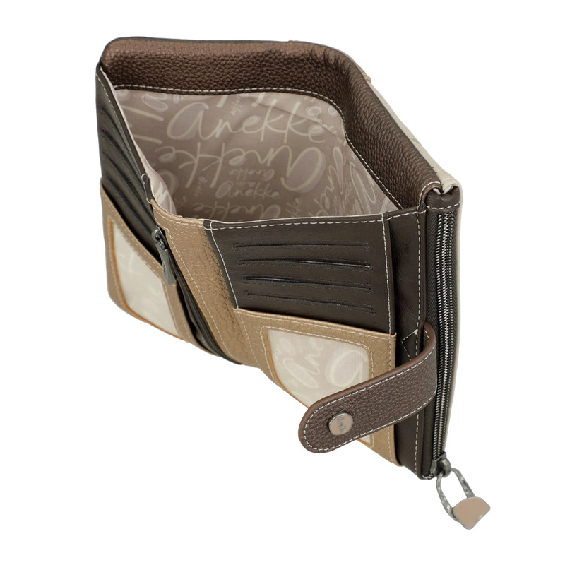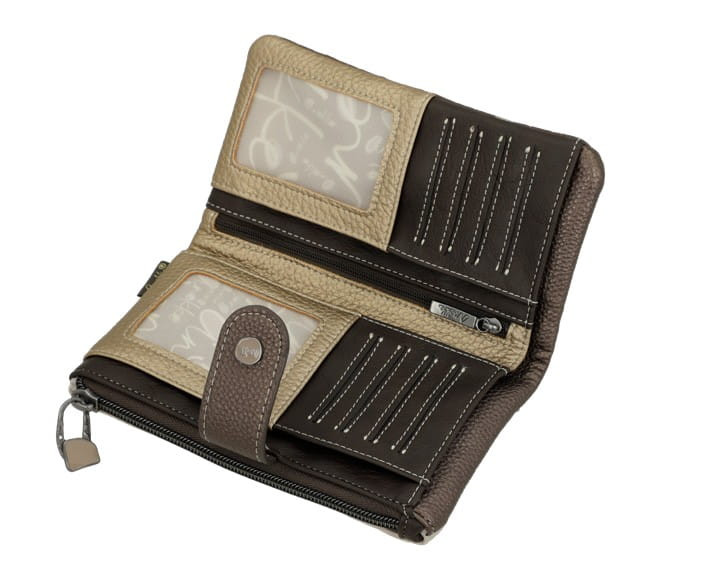 Anekke RFID pénztárcaelején cipzáras aprótartóbelseje egyterűhátulján patentos fő rekeszbelül 9 db kártyatartóbelül 2 db fényképtartóbelül 1 db cipzáras zsebbelül 2 db rejtett rekeszbelül 1 db papírpénztartóRFID védelemmel ellátvaSzé:18 x Ma:10 x Mé:4 cm