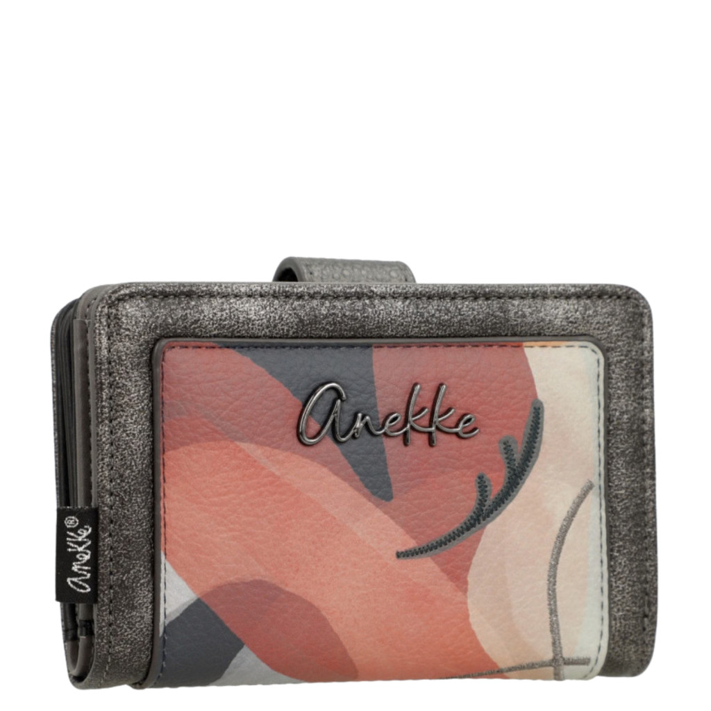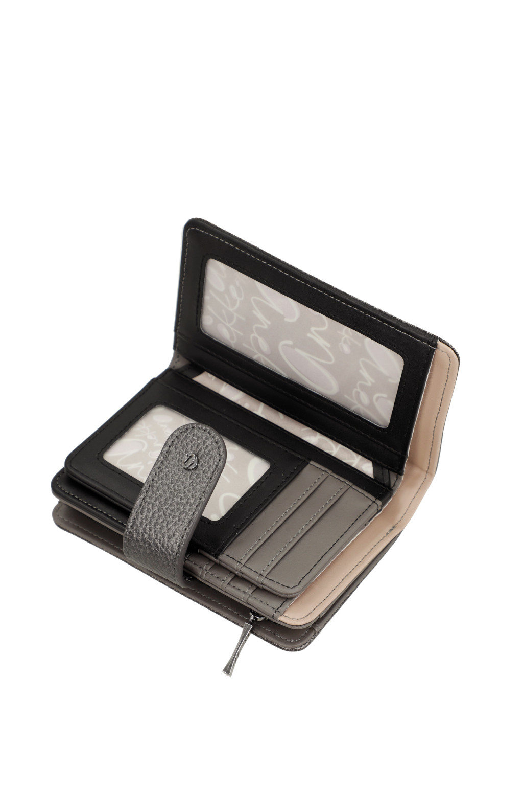 Anekke pénztárcafelül cipzáras aprópénztartó hátulján patentos kártyatartó rekeszRFID védelembelül 10 db kártyatartóbelül 2 db fényképtartóbelül 7 db rejtett rekeszbelül 2 db papírpénztartó rekeszSzé:14x Ma:10x Mé:3 cm