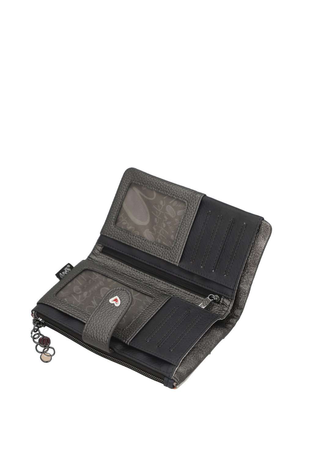 Anekke RFID pénztárcaelején cipzáras aprótartóbelseje egyterűhátulján patentos fő rekeszbelül 9 db kártyatartóbelül 2 db fényképtartóbelül 1 db cipzáras zsebbelül 2 db rejtett rekeszbelül 1 db papírpénztartó
