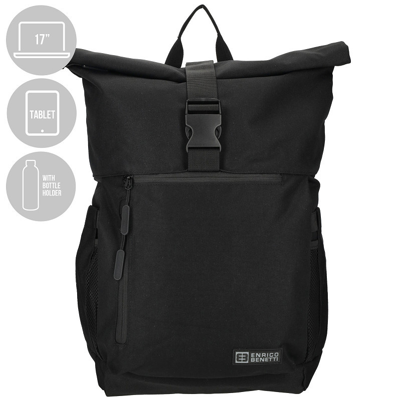 Enrico Benetti laptoptartós hátizsákergonómikus kialakításúhátkímélő, párnázott hátrészlaptoptartó rekesz 14"jól pakolhatóelején két cipzáras zseb rendezővelcipzáras fő rekeszkét oldán rugalmas zsebpatentos áthajtóállítható hosszúságú vállpántŰrtartalom: 23,5 lSzé:35x Ma:45 x Mé:16cm