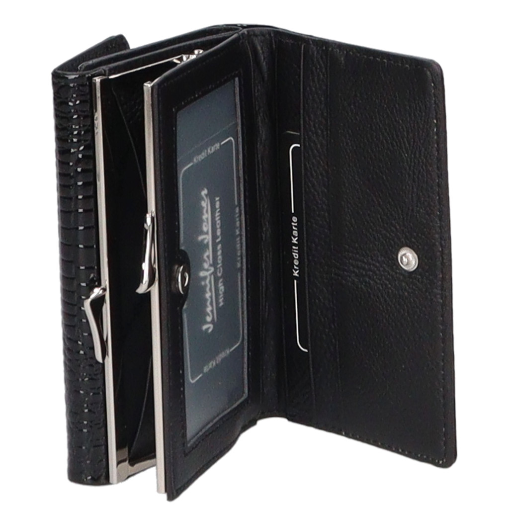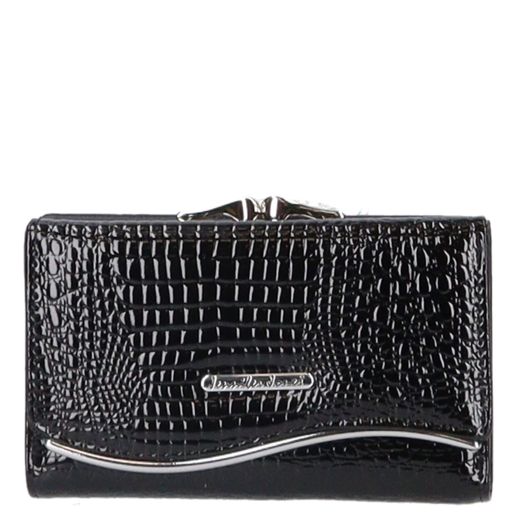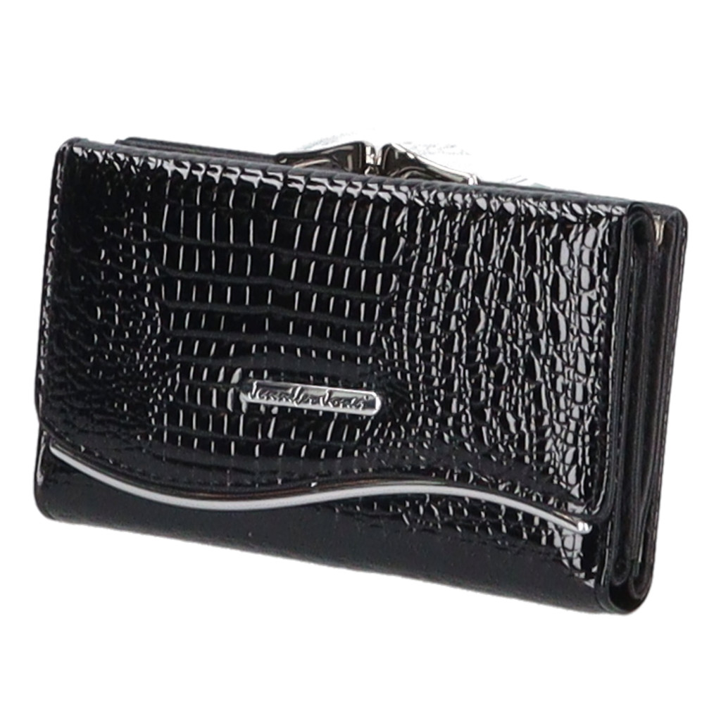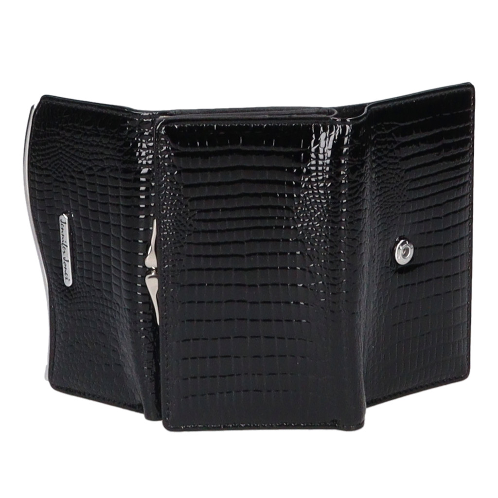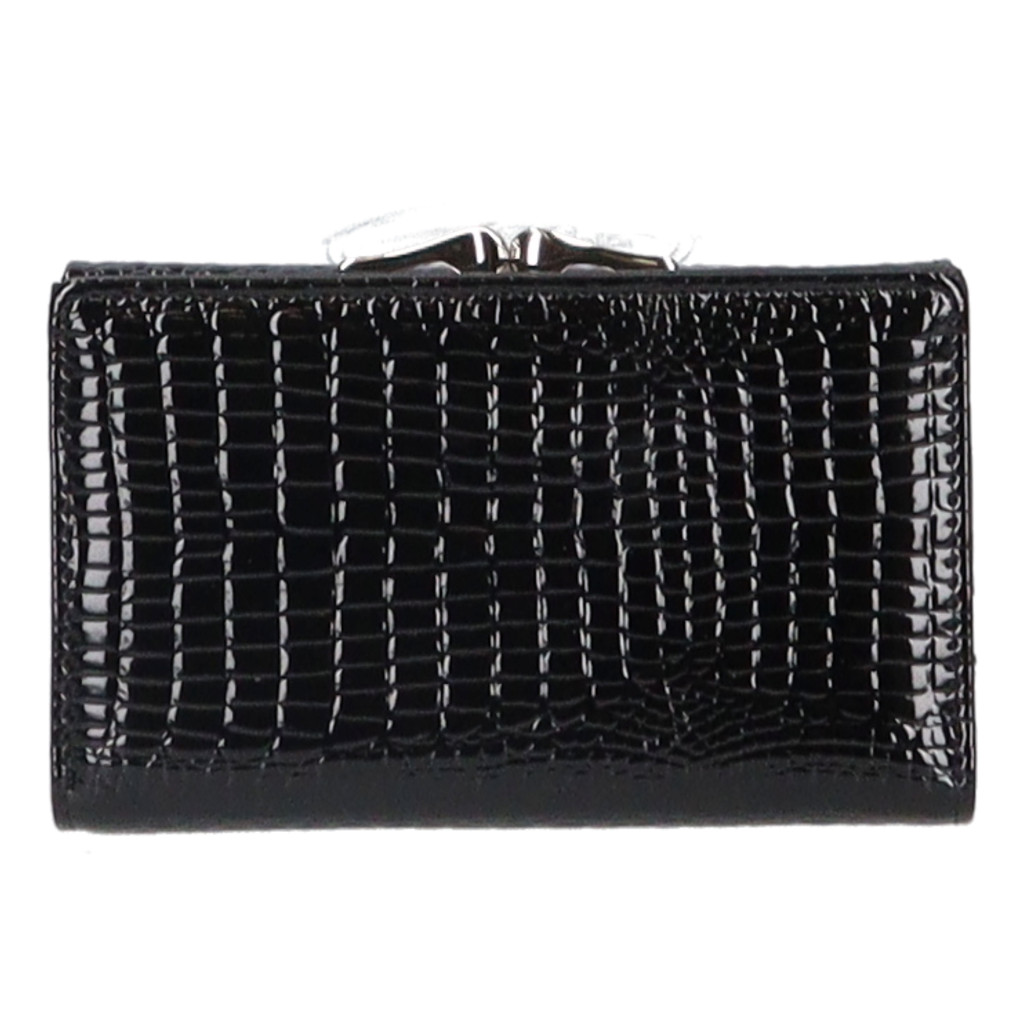 bőr női pénztárcafényes elegáns lakk bőrpatentos főrekesz1 papírpénztartó3 db rejtett rekesz8 db kártyatartó1 db fényképtartó belülközépen keretes aprótartóhátul patentos kártyatartó1 db irattartó3 db kártyatartóSzé:14,5 x Ma:9,5 x Mé:3,5 cm