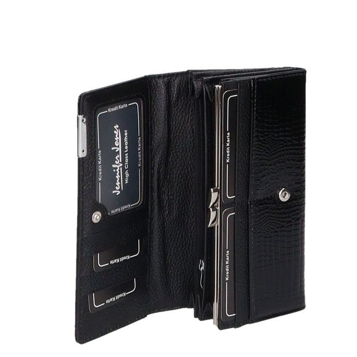 Jennifer bőr női pénztárcafényes elegáns lakk bőr3 rekeszes belülegy cipzáras zsebegy keretes aprótartóbelül osztott8 db kártyatartó belül1 db fényképtartó belülSzé:18 x Ma:10 x Mé:3 cm