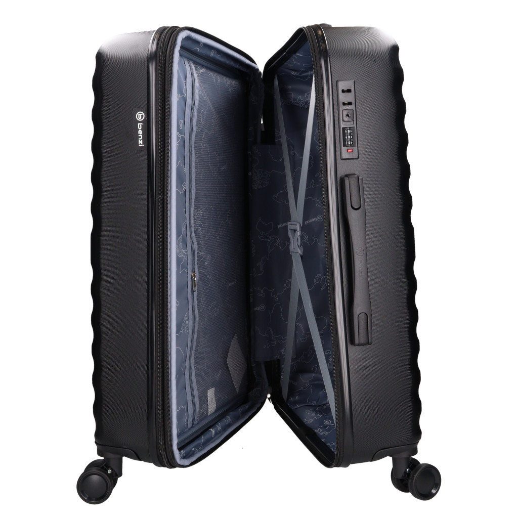 Benzi közepes méretű bőröndcipzárral bővíthetőegy hetes utazáshoz360 fokban finoman gördülő dupla kerekes, négykerekűkemény, ütésálló Polipropilén anyagbólháromjegyű számzárasbelül cipzáras térelválasztóállítható belső keresztpántokkis kézi fogantyú és teleszkópos, kétállásos húzókartetején és oldalán fix kézbefogó fogantyúSzé:39 x Ma:64 x Mé:26 cmSúlya: 3,1 kg