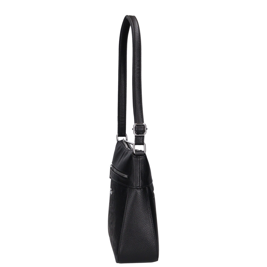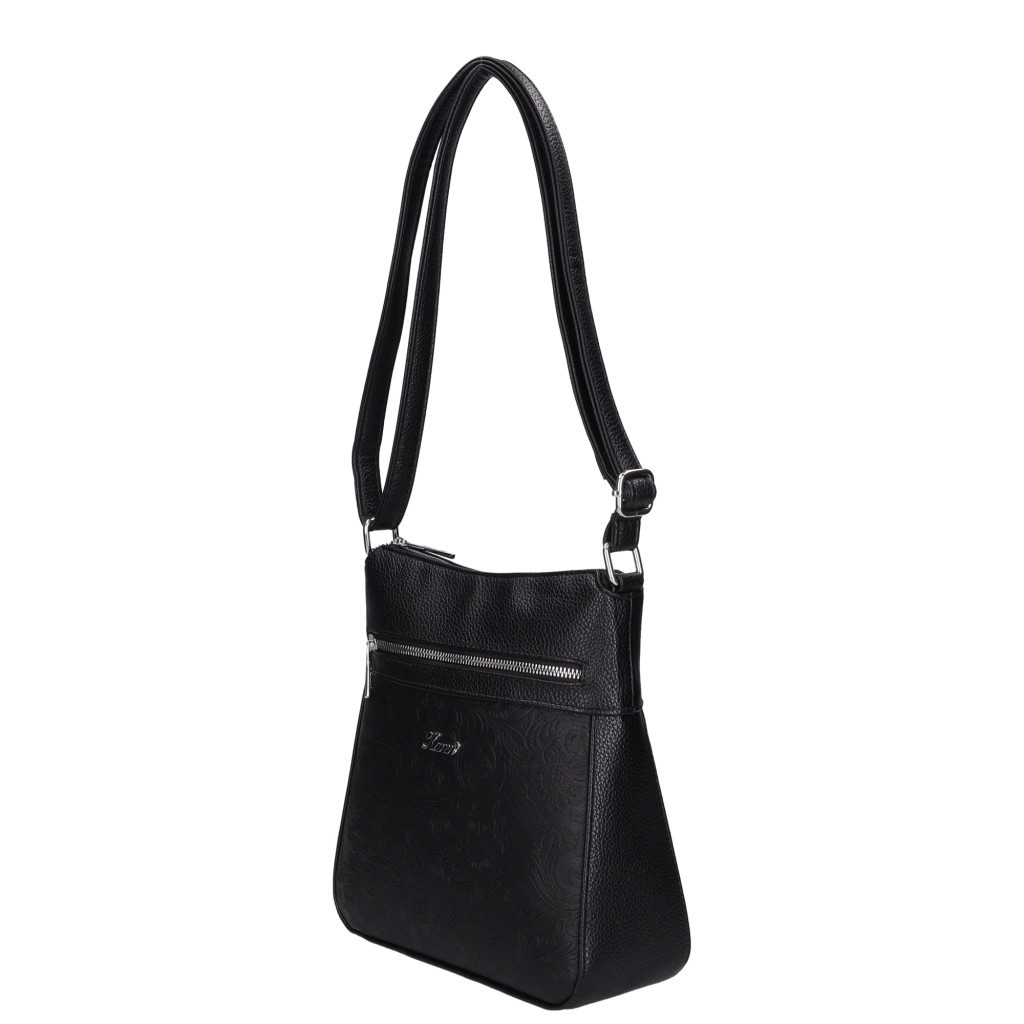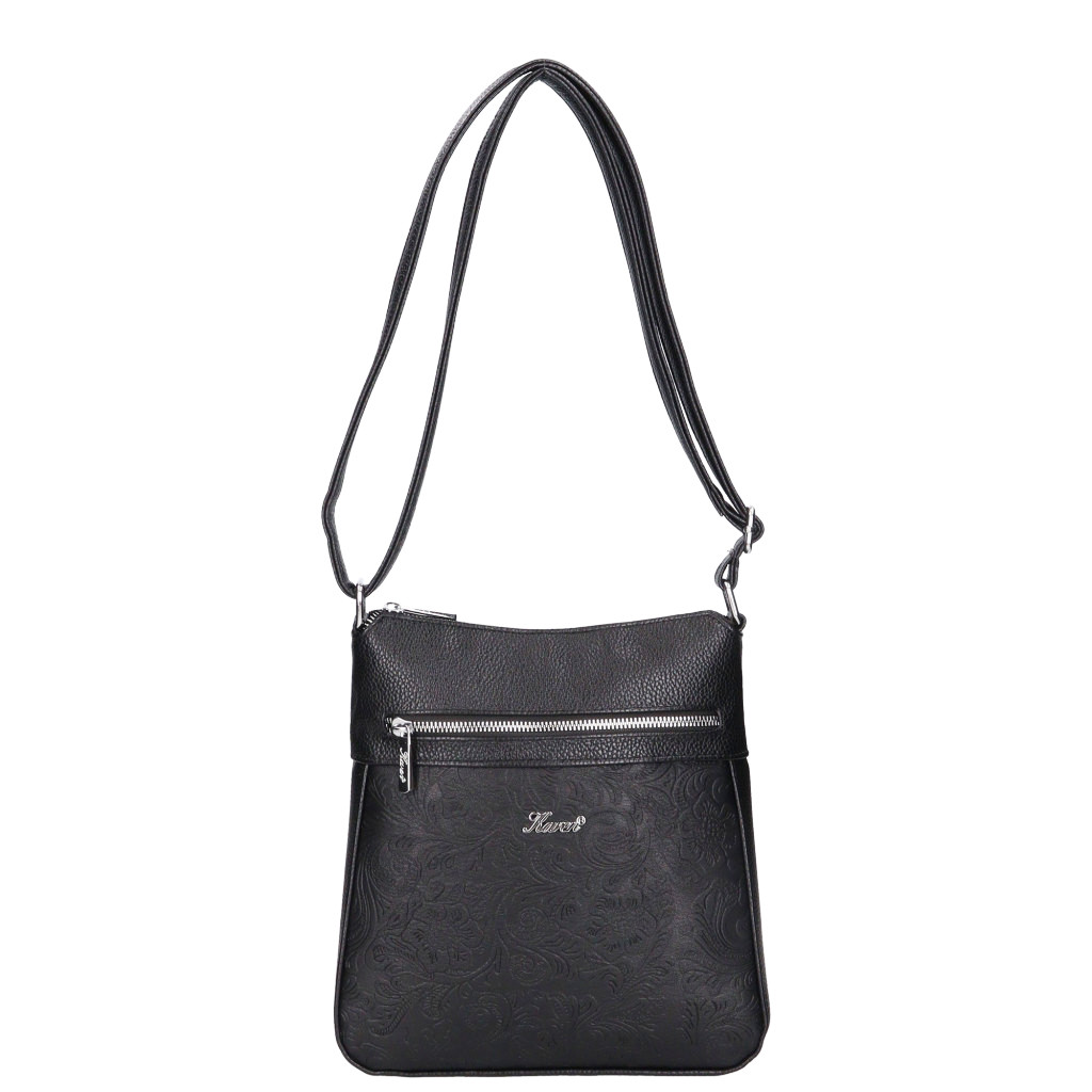 Karen 9504 fekete virágos rostbőr táska
