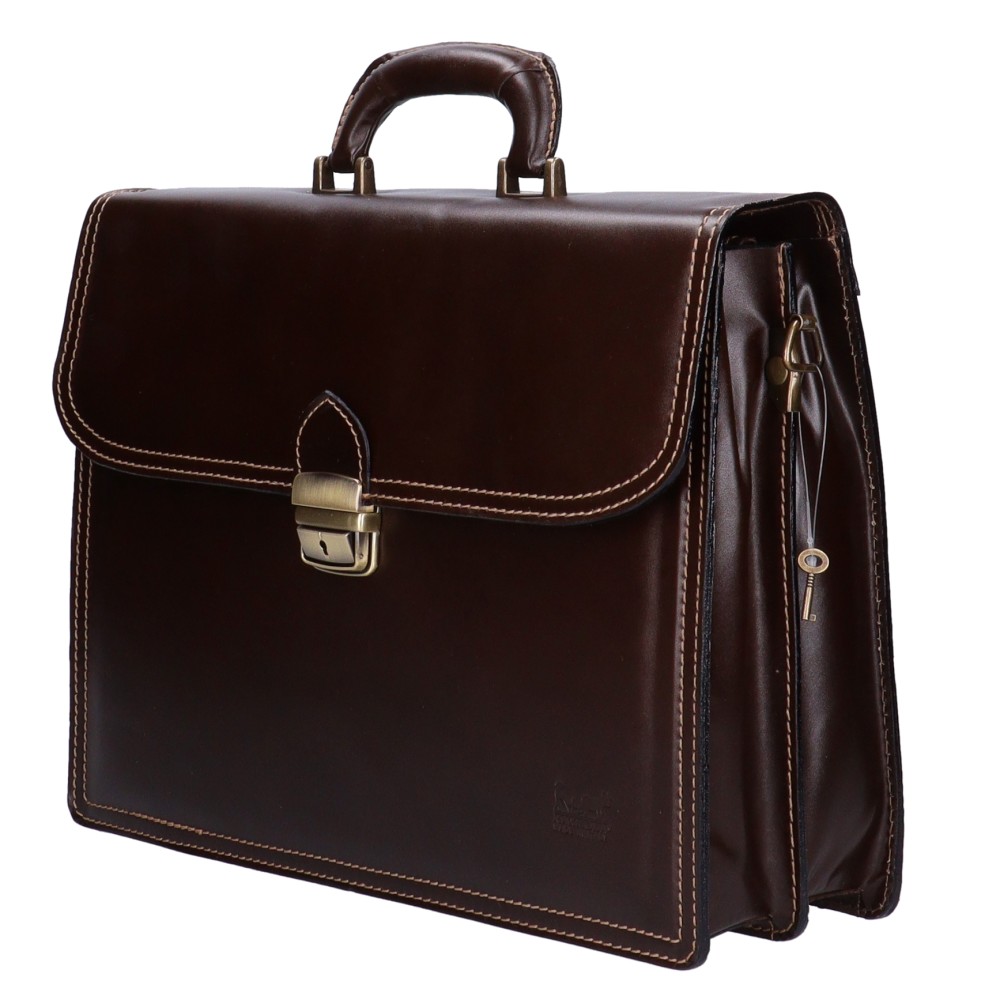 Aktatáska 2 rekeszes barna Sima BŐR