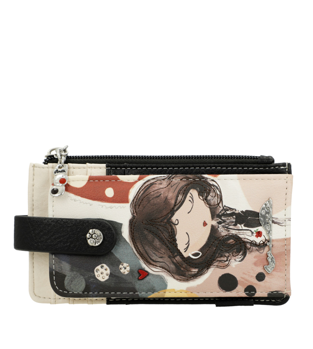 Anekke kártyatartóelején patentos kártyatartó rekeszbelül 9 db kártyatartó belül 1 db fényképtartóközépen cipzáras rekeszbelül egyterűhátulján cipzáras zseb RFID védelemmel ellátottSzé:16x Ma:9x Mé:1 cm