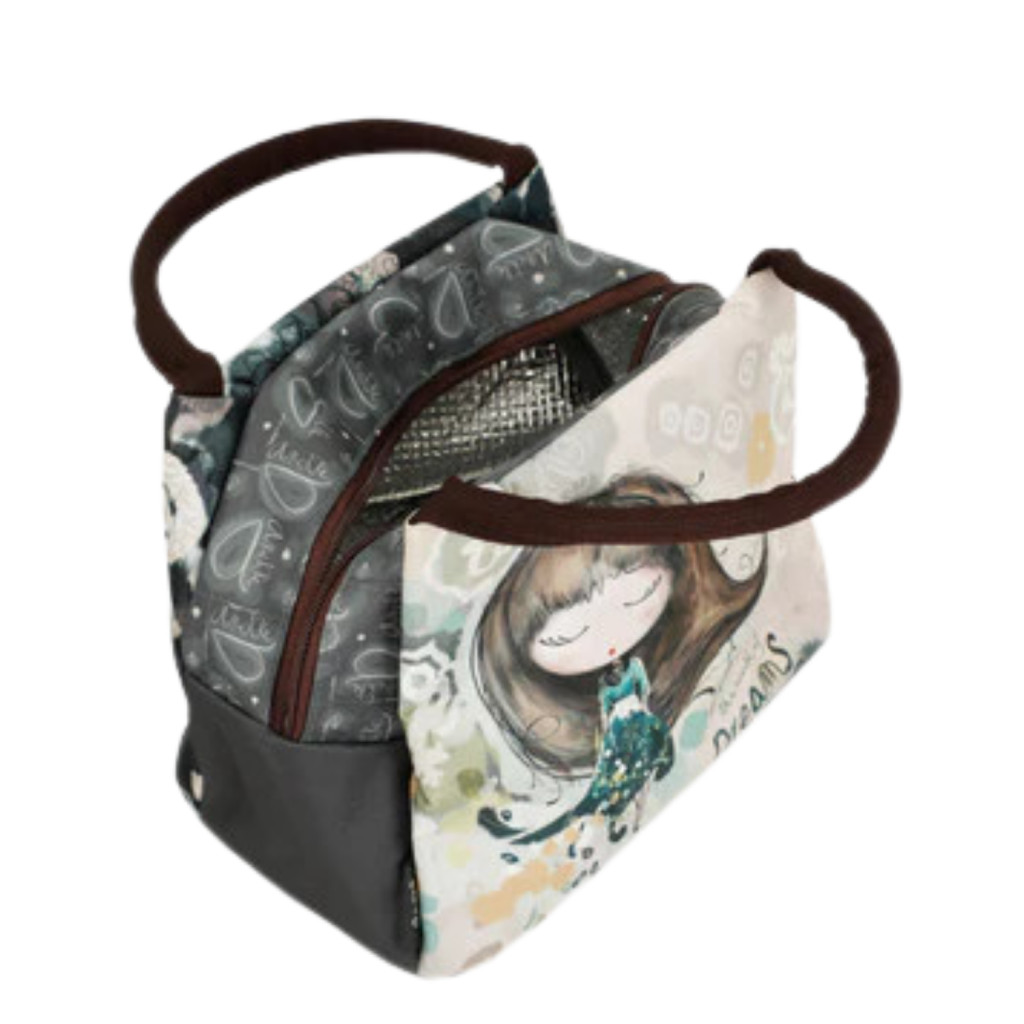 Anekke hűtőtáska és uzsonnás táskacipzáras fő rekeszbelseje egyterűalumíniumfólia belső hőbéléskézbe fogója: 30 cmSzé:23x Ma:19x Mé:16 cm
