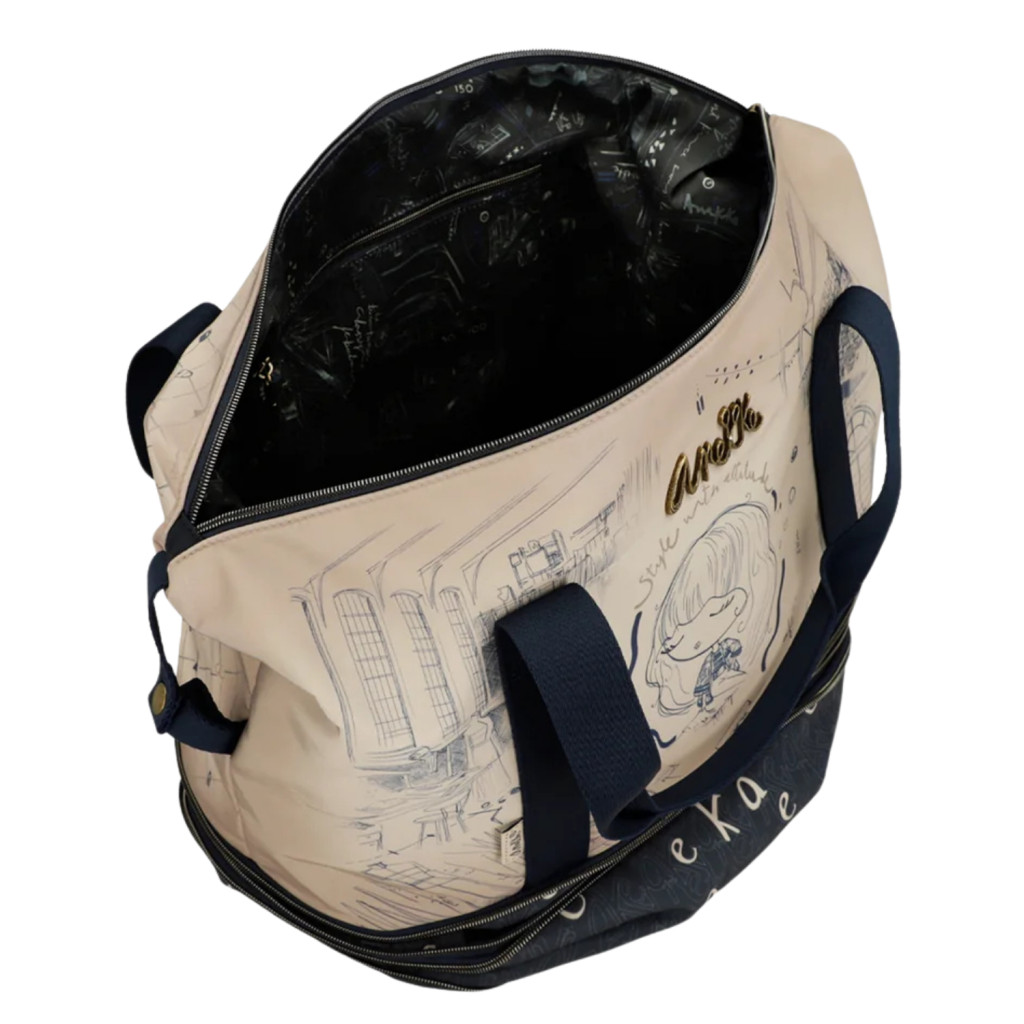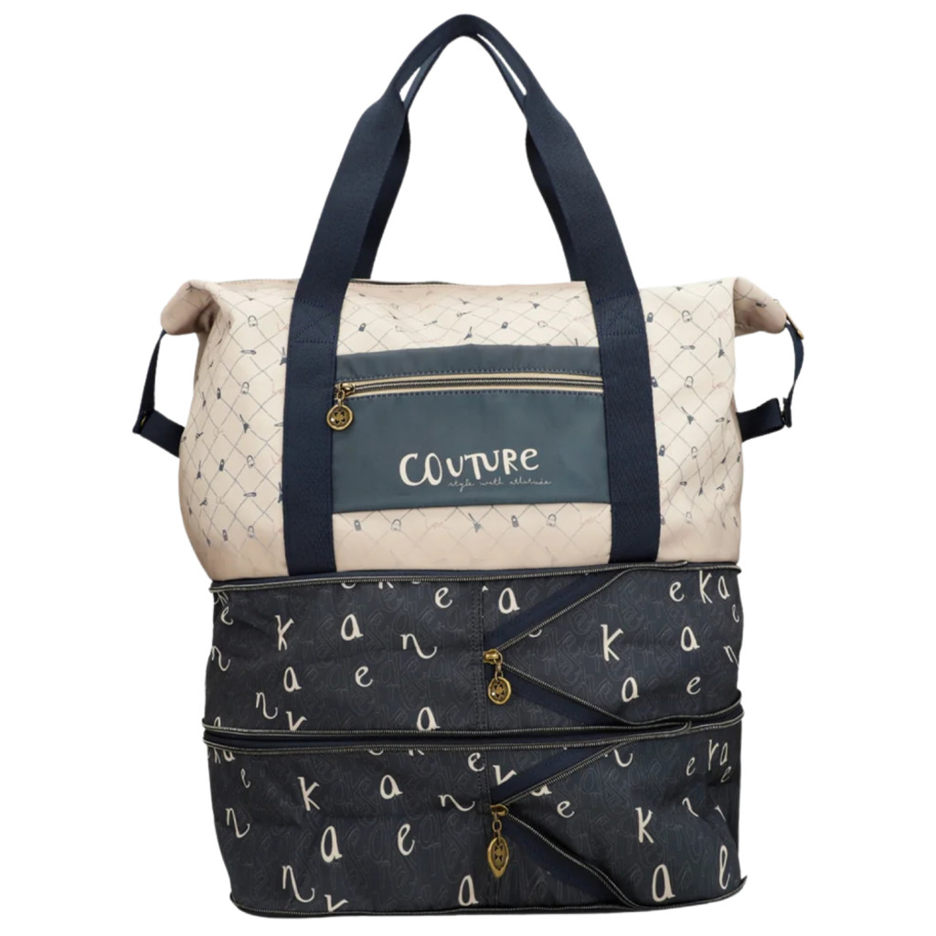 Anekke utazótáskacipzáras fő rekeszbelseje egyterűbelül cipzáras zseb és mobiltartóhátulján cipzáras zsebalul cipzárral bővíthetőkézben és vállon hordhatóvállpántja: 55 cmSzé:52x Ma:36cm x Mé:22 cm