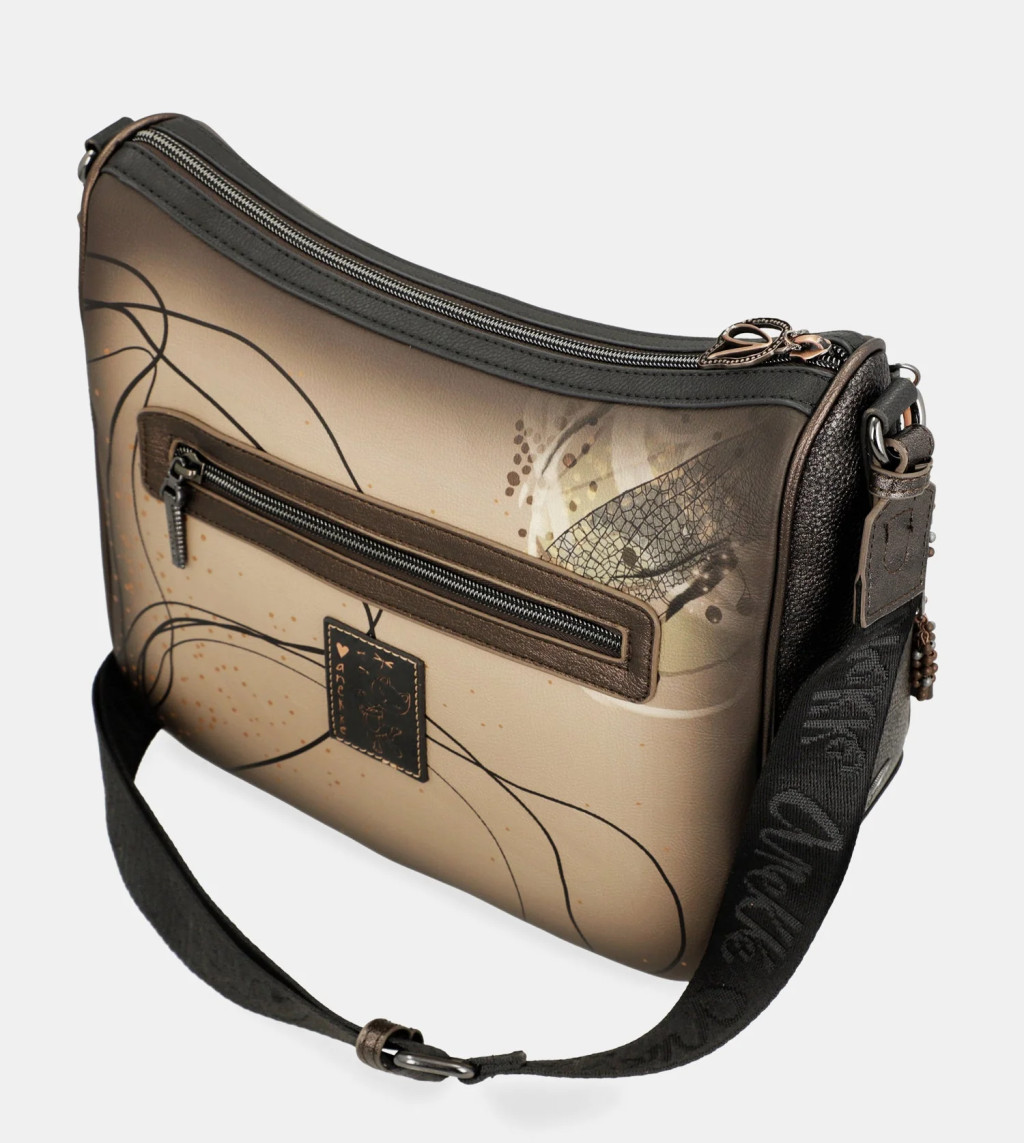 Az Anekke Dreamverse egy olyan kollekció, amelyet a képzeleten keresztül a Föld középpontjába vezető utazás ihletett. A kaland elindításához csak ki kell élesítenie érzékeit és új kedvencét a kollekcióból. készen állsz? Az utazás most kezdődik! Ez a termék az Anekke Dreamverse Wings termékcsaládjának része. Ez a kollekció legelegánsabb kapszula, két színben (bézs és sötétbarna) kapható, melynek elején a megkövesedett szárnyak formáit fedezheti fel. Az egyedi részletek, mint például az arany és a fémes pöttyök teljesen elmerítik Önt ebben az Univerzumban, amelyben kedvenc kiegészítői is bejárhatják a belső teret.