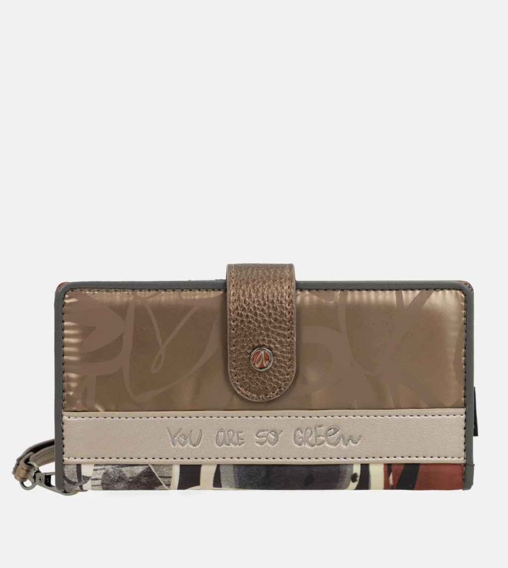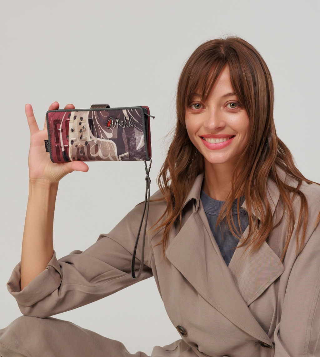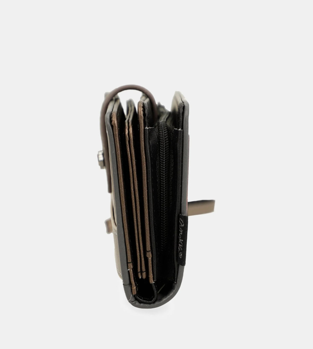 Anekke pénztárcafelül cipzáras osztott aprópénztartó hátulján patentos kártyatartó rekeszbelül 16 db kártyatartóbelül 4 db fényképtartóbelül 1 db papírpénztartó rekeszbelül 6 db rejtett rekeszRFID védelemSzé:18x Ma:10x Mé:3 cm