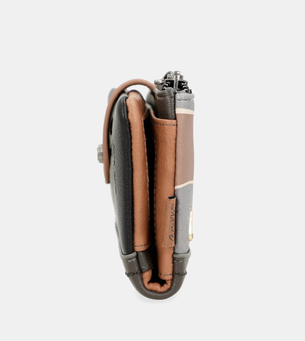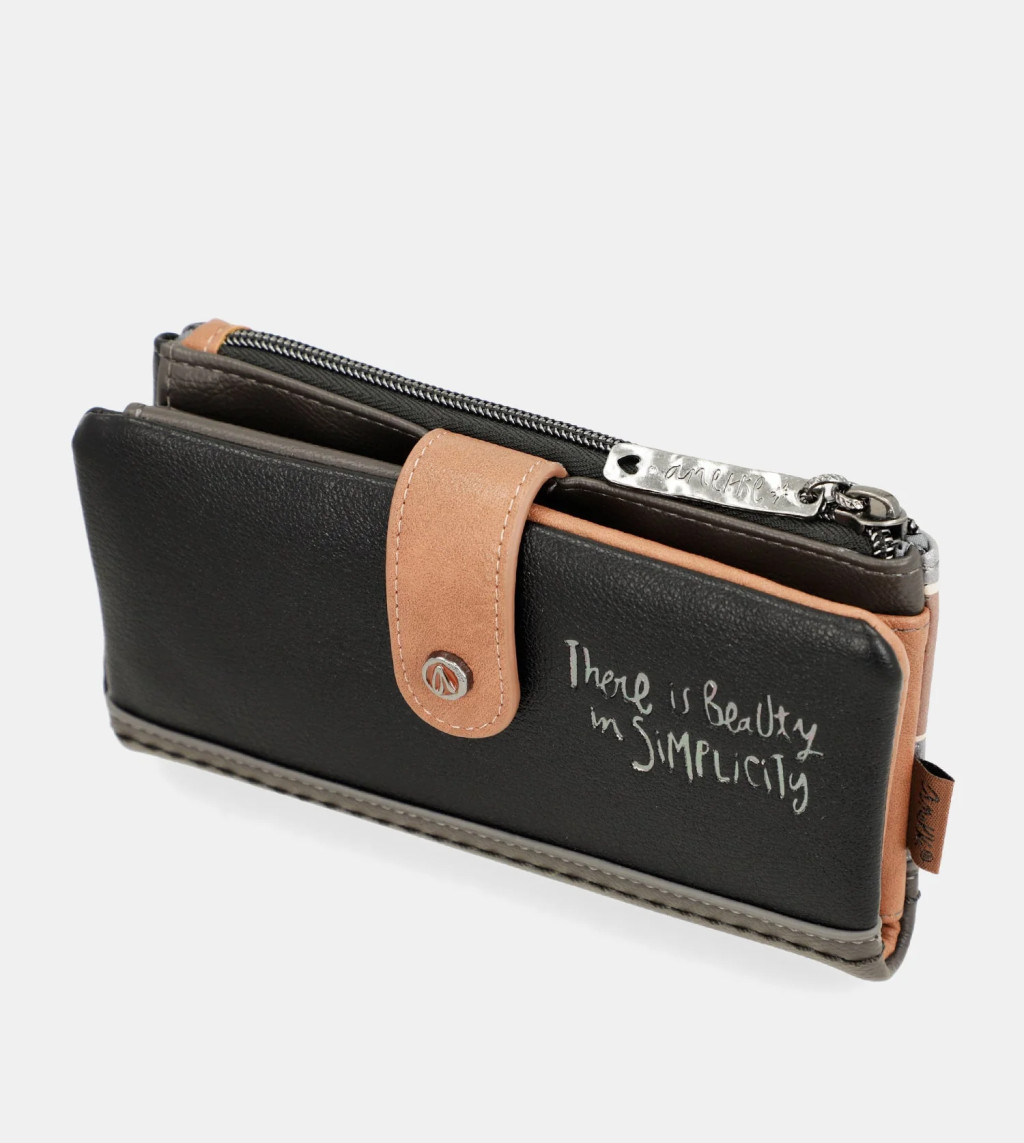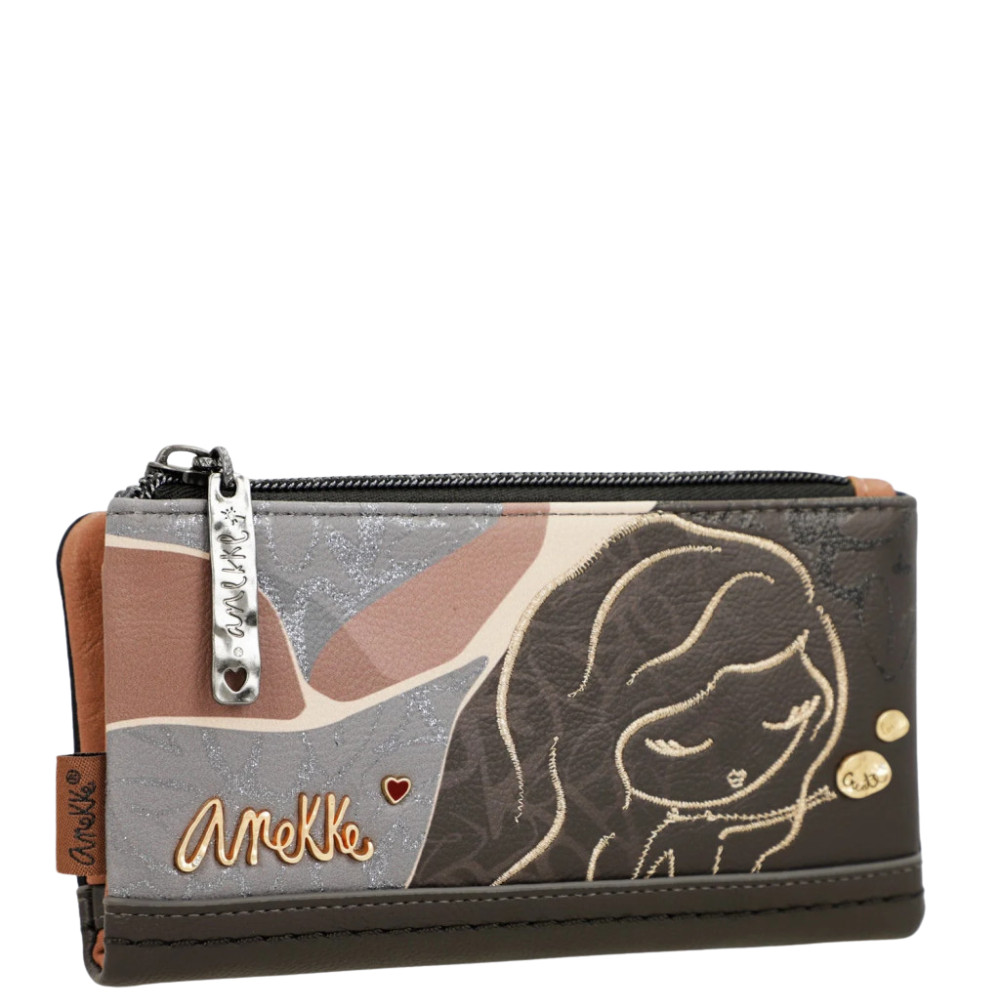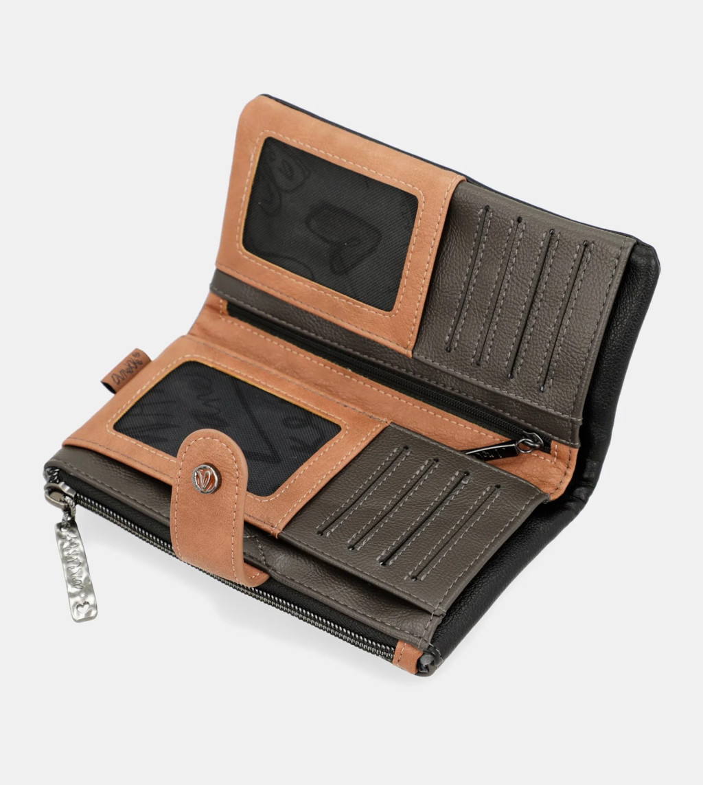 Anekke pénztárcaelején cipzáras aprótartóbelseje egyterűhátulján patentos fő rekeszbelül 9 db kártyatartóbelül 2 db fényképtartóbelül 1 db cipzáras zsebbelül 2 db rejtett rekeszbelül 1 db papírpénztartóRFID védelemmel ellátvaSzé:18x Ma:10x Mé:2 cm