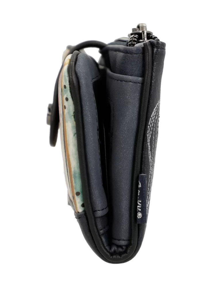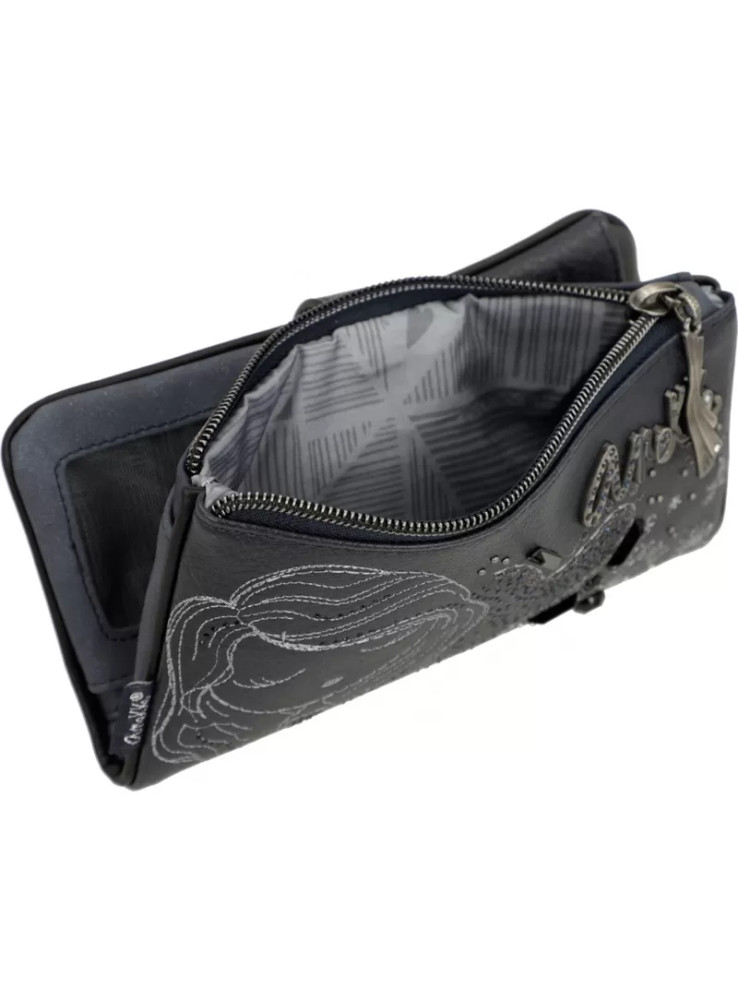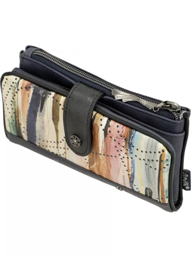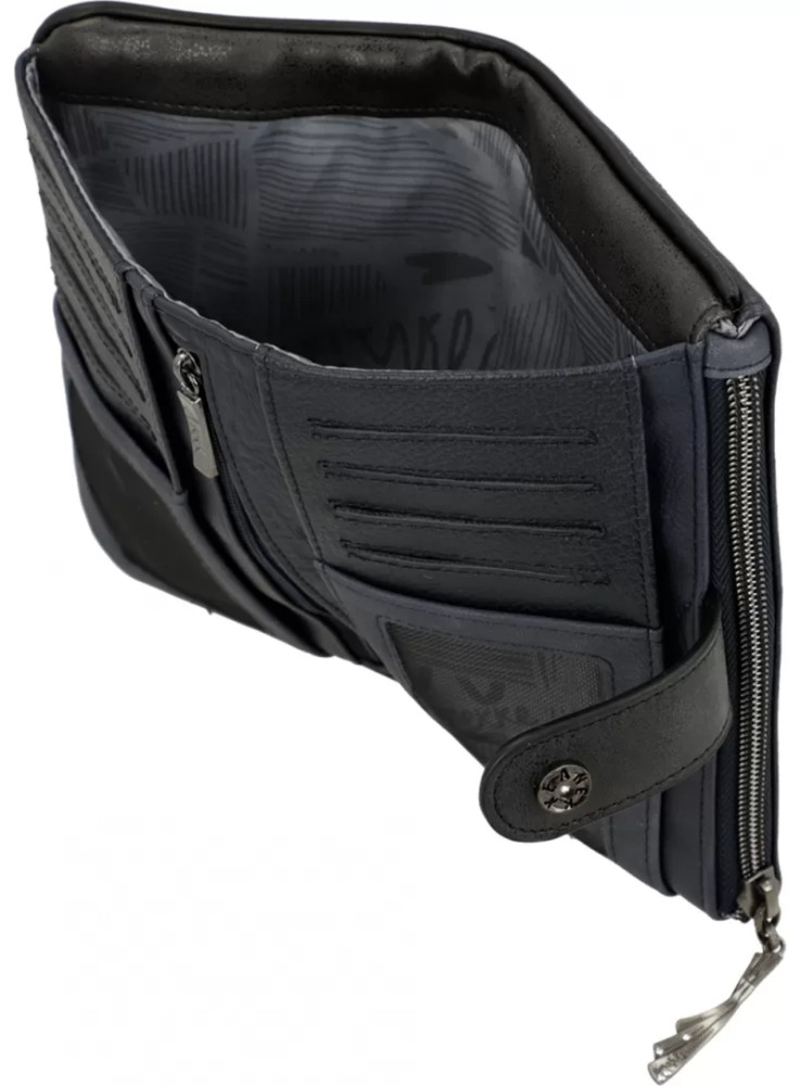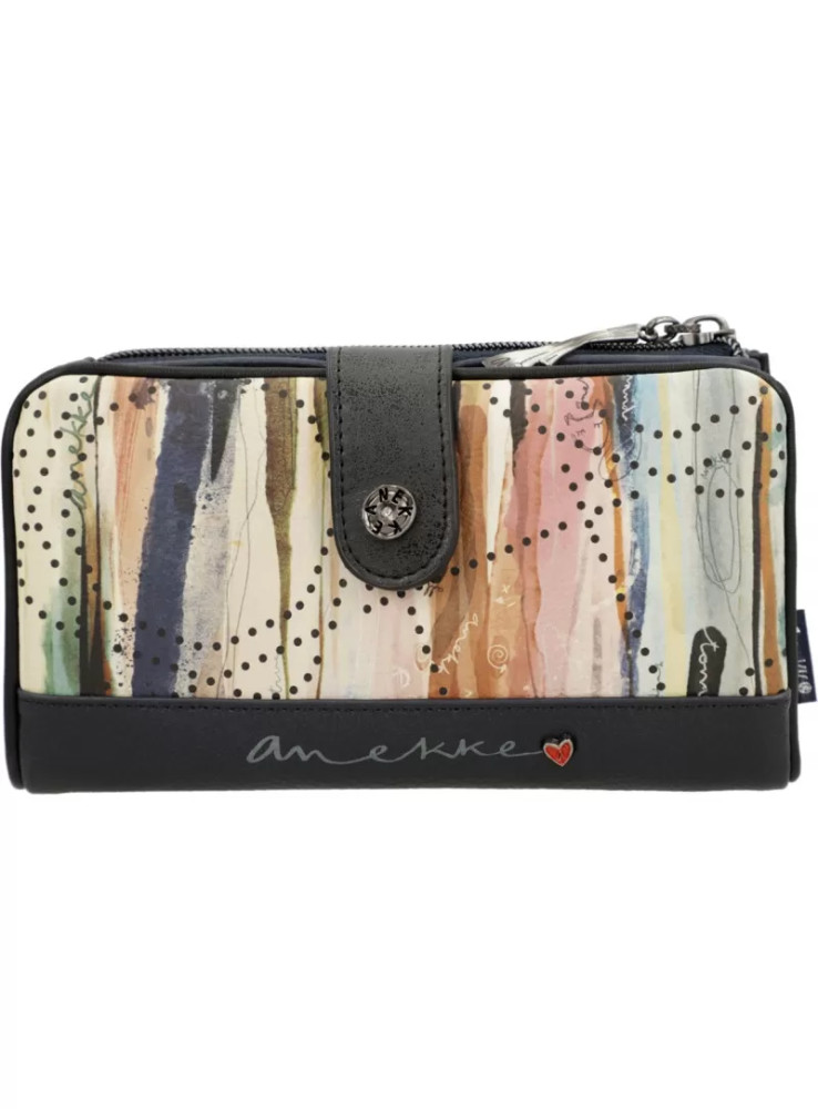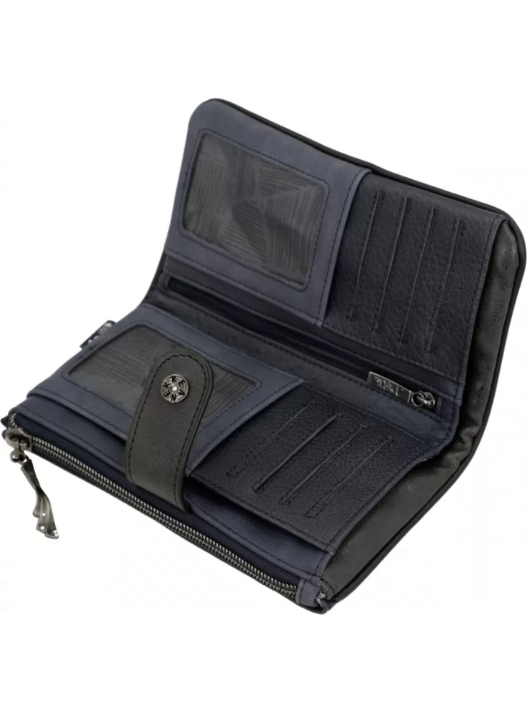 Anekke pénztárcaelején cipzáras aprótartóbelseje egyterűhátulján patentos fő rekeszbelül 9 db kártyatartóbelül 2 db fényképtartóbelül 1 db cipzáras zsebbelül 2 db rejtett rekeszbelül 1 db papírpénztartóRFID védelemmel ellátvaSzé:18x Ma:10x Mé:3 cm