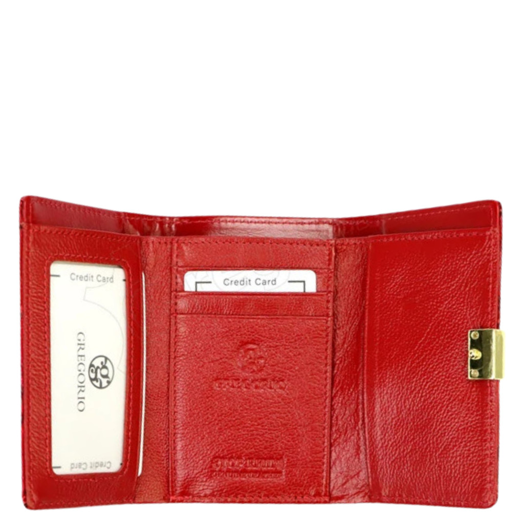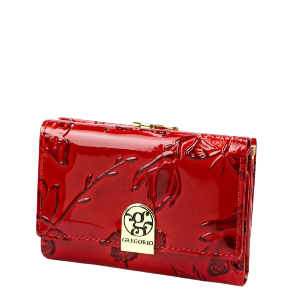 Gregorio lakk bőr női pénztárcapatentos fő rekesz1 db papírpénz tartó2 db rejtett zseb belül3 db kártyatartó belül1 db fényképtartó belülhátulján keretes osztott aprótartóRFID védelemSzé:12 x Ma:8 x Mé:2 cm