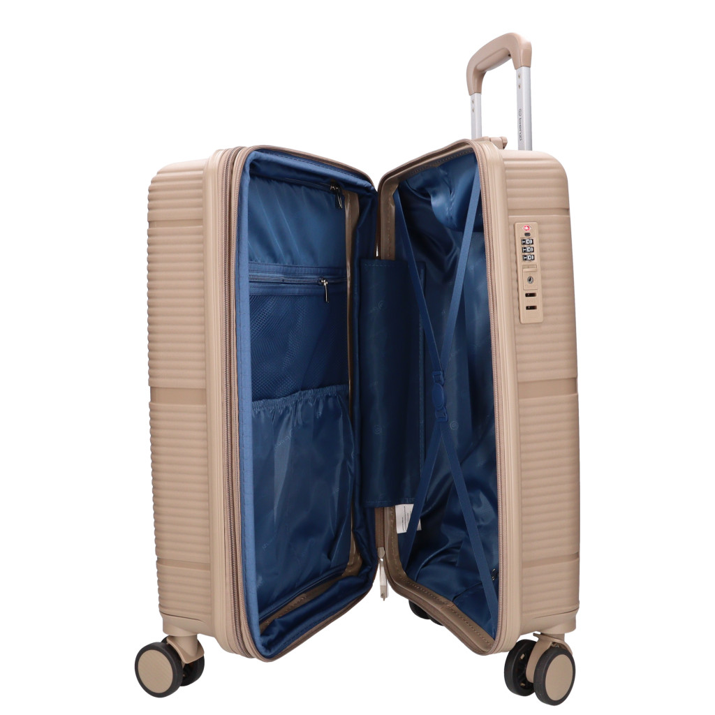 Benzi kabin méretű bőröndcipzárral bővíthetőpár napos utazáshoz360 fokban finoman gördülő dupla kerekes, négykerekűkemény, ütésálló Polipropilén anyagbólháromjegyű számzárasbelül cipzáras térelválasztóállítható belső keresztpántokkis kézi fogantyú és teleszkópos, kétállásos húzókartetején fix kézbefogó fogantyúSzé:35 x Ma:55 x Mé:20 cmSúlya: 2,9 kg