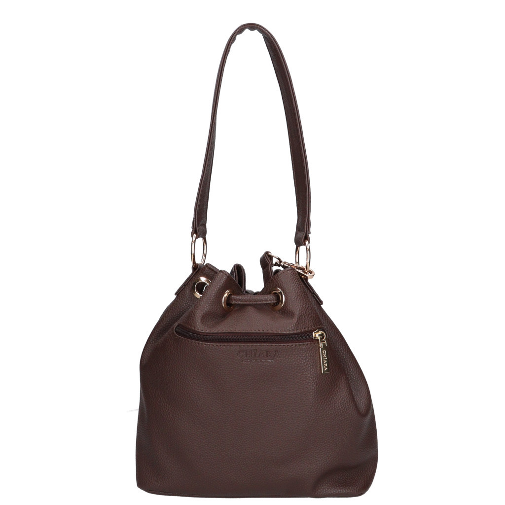 Chiara rostbőr válltáskazsinórral összehúzható mágneses záródású fő rekeszbelseje egyterűbelül cipáras zseb és mobiltartó hátul cipzáras zseblevehető vállpántja állítható 60-100 cmSzé:25x Ma:25x Mé:14 cm