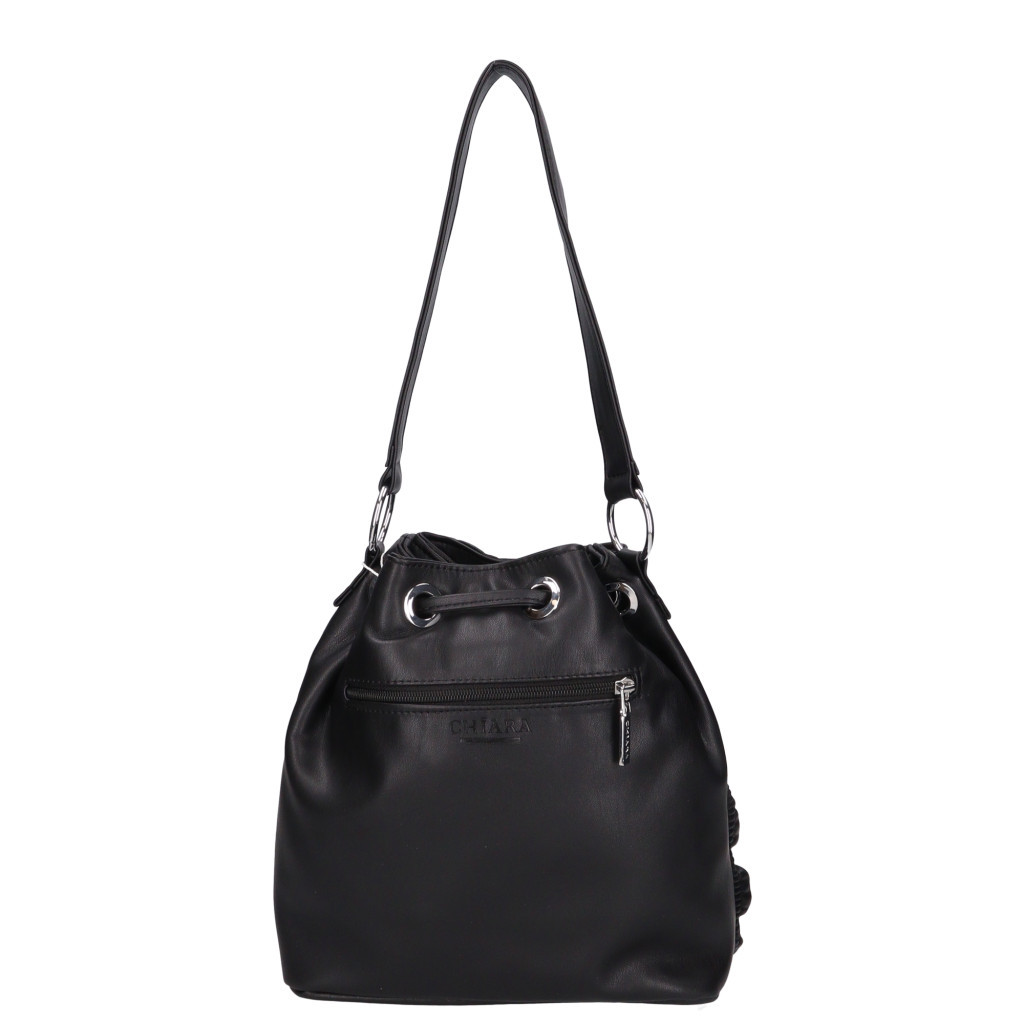 Chiara rostbőr válltáskazsinórral összehúzható mágneses záródású fő rekeszbelseje egyterűbelül cipáras zseb és mobiltartó hátul cipzáras zseblevehető vállpántja állíthatóSzé:25x Ma:25x Mé:14 cm