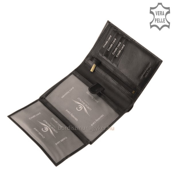 bőr férfi pénztárcaálló fazon1 db papírpénztartó8 db kártyatartó6 db irattartó1 db cipzáras zsebSzé:15 x Ma:11 cm<