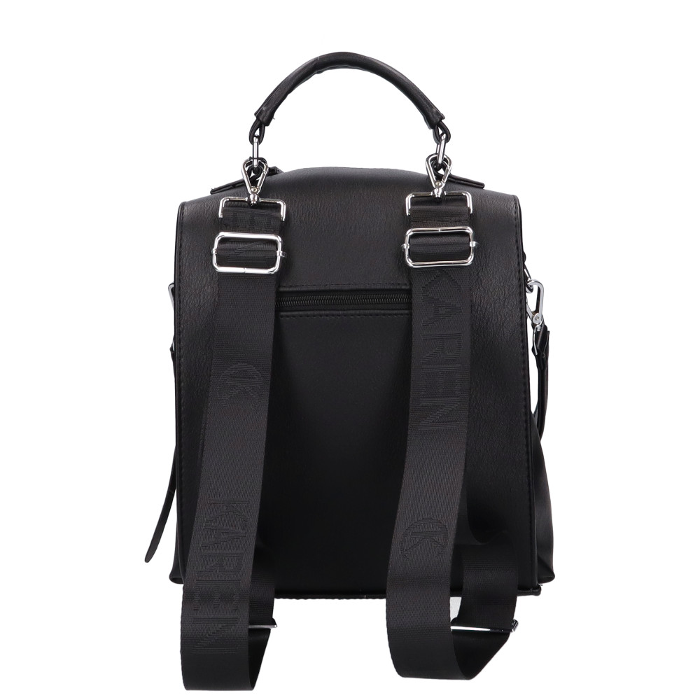Karen rostbőr hátitáskaközepes méretűszögletes fiatalos fazonelején díszcipzárhátulján cipzáras zsebtetején cipzáras fő rekeszbelül egyterűmobiltartó és belső cipzáras zsebvállon és háton hordhatóvállra akasztója 40 cmhátizsák vállpántja állíthatóSzé:26x Ma:32x Mé:15cm