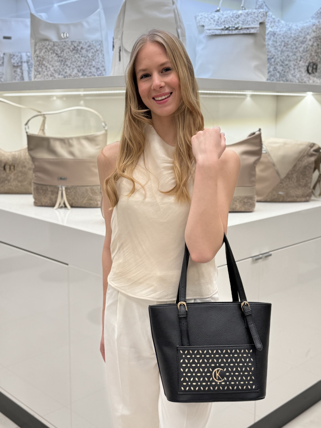Karen rostbőr női táskakisebb elegáns fazoncipzáras fő rekeszbelül osztottcipzáras elválasztóvalbelül cipzáras zseb és mobiltartóelől zsebhátulján cipzáras zsebalján fém védőtalpakvállpántja 51 cmSzé:35x Ma:24x Mé:14 cm