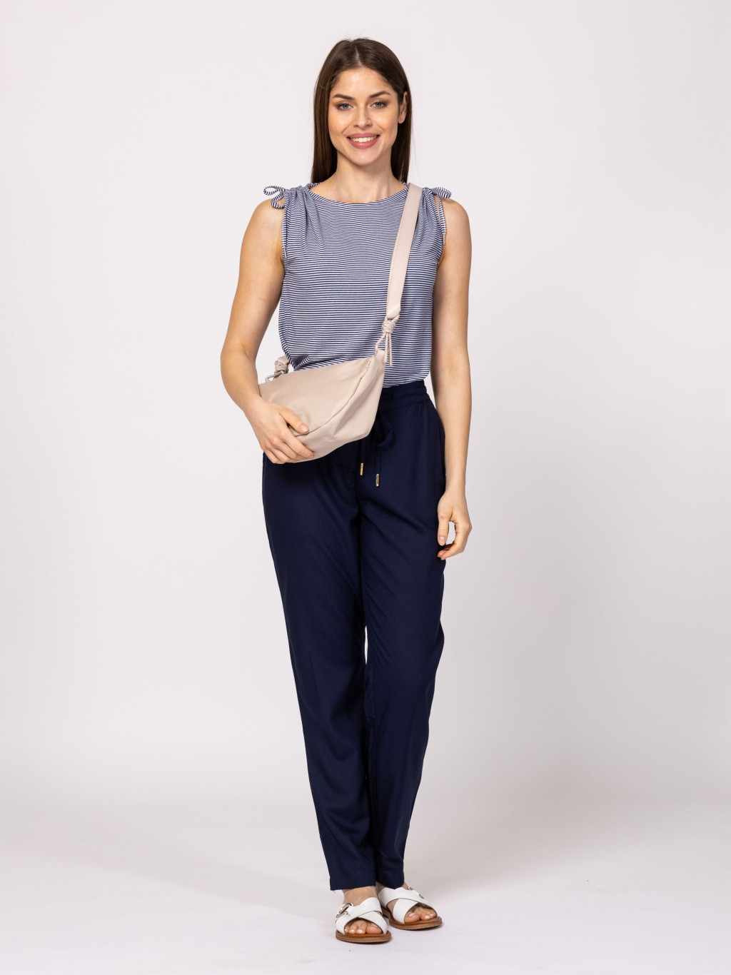 Női válltáska, alap színekben vagy pöttyös mintával, egy rekesszel, cipzáros záródással, cipzáros belső zsebbel, elején kis márkajelzéssel. Méretek: 28x16x8 cm. Anyaga: 100% poliészter, bélés: 100% poliészter