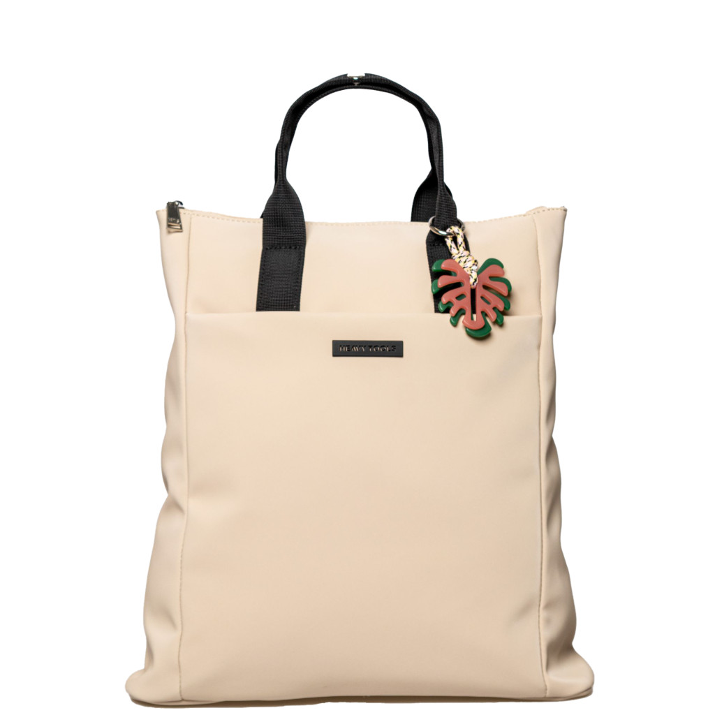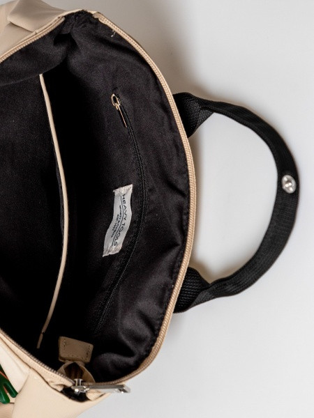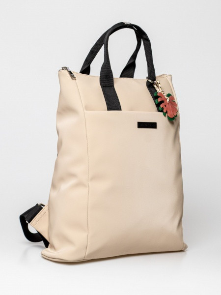 Női hátizsák, alap színekben, egy rekesszel, cipzáros záródással, cipzáros első zsebbel, belső zsebbel, állítható vállpánttal, elején kis márkajelzéssel, nyári hangulatot idéző táska dísszel. Űrtartalom: 10 liter, méretek: 34x36x9 cm. Anyaga: 100% poliészter, bélés: 100% poliészter