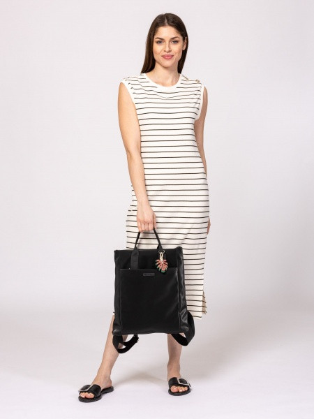 Női hátizsák, alap színekben, egy rekesszel, cipzáros záródással, cipzáros első zsebbel, belső zsebbel, állítható vállpánttal, elején kis márkajelzéssel, nyári hangulatot idéző táska dísszel. Űrtartalom: 10 liter, méretek: 34x36x9 cm. Anyaga: 100% poliészter, bélés: 100% poliészter