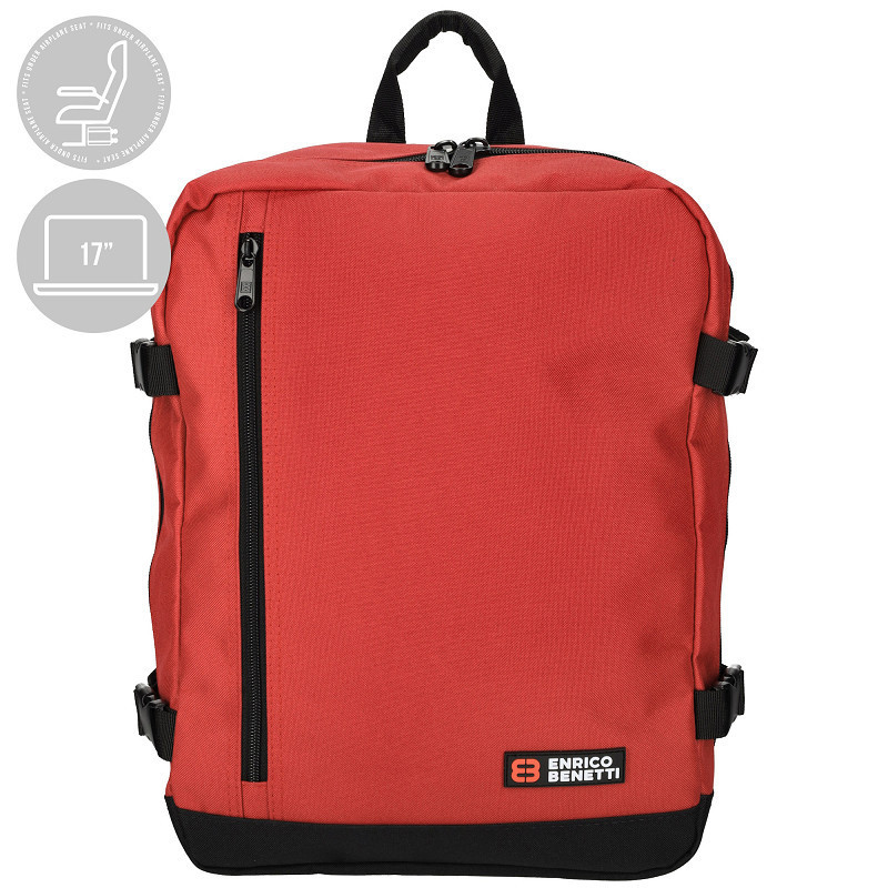 Enrico Benetti utazó hátizsák és fedélzeti táskaWizzair méretű kabintáskaSzé:30x Ma:40x Mé:20 cmjól pakolhatóelején cipzáras zsebcipzáras fő rekeszbelseje egyterűbelső cipzáras rekeszlaptoptartó rekesz 17 hüvelykeshátul cipzáras zsebkézben és vállon hordható4 patentos csattal összehúzható