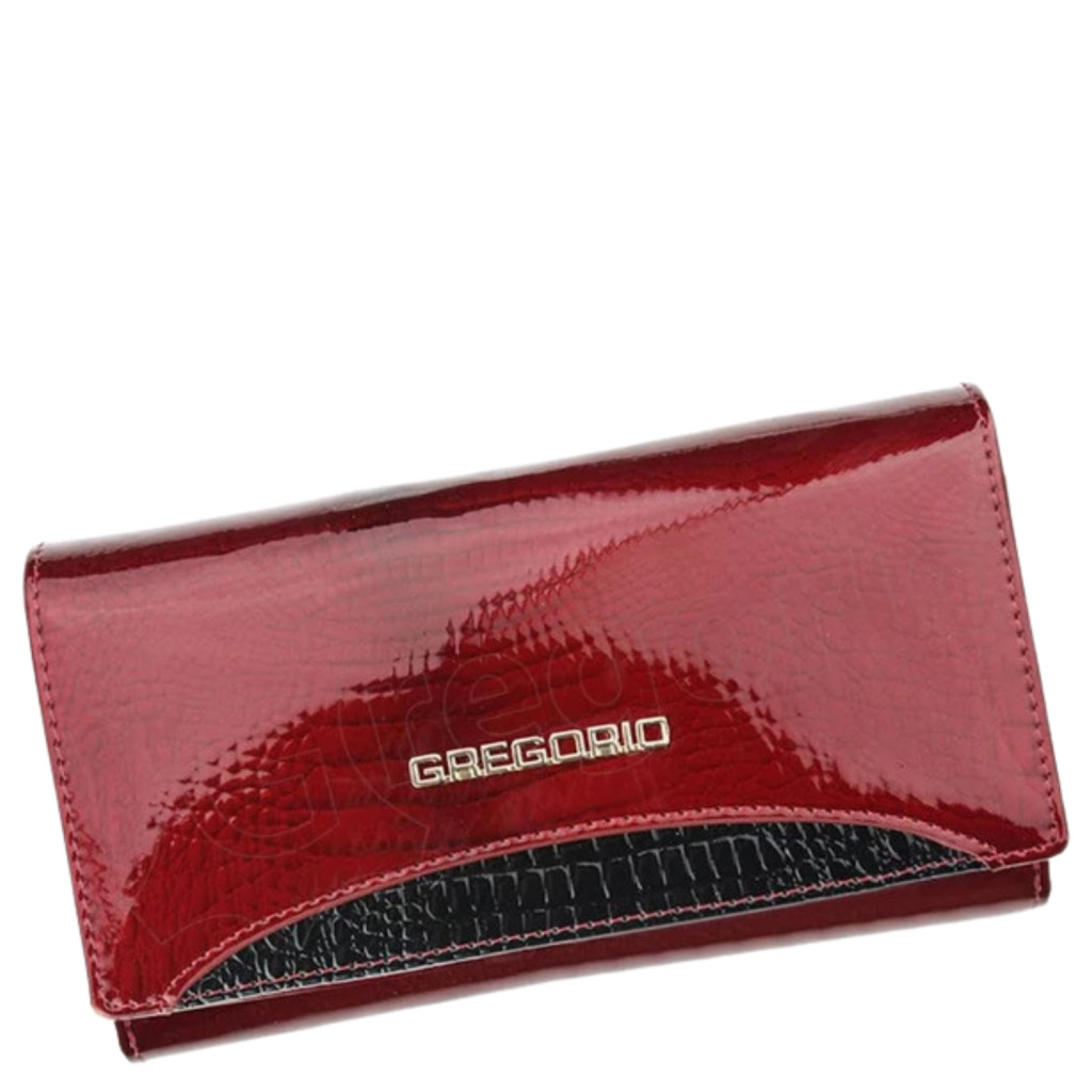 lakk bőr női pénztárcaezüst feliratpatentos fő rekesz3 rekeszes belül2 db cipzáras aprótartó belül2 db rejtett zseb belül7 db kártyatartó belül1 db fényképtartó belülRFID védelemSzé:17,5 x Ma:10 x Mé:2 cm