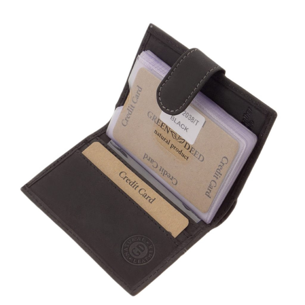 Egy igazán praktikus kialakítású, divatos megjelenésű valódi bőr kártyatartó a GreenDeed kínálatából, minőségi díszdobozban.