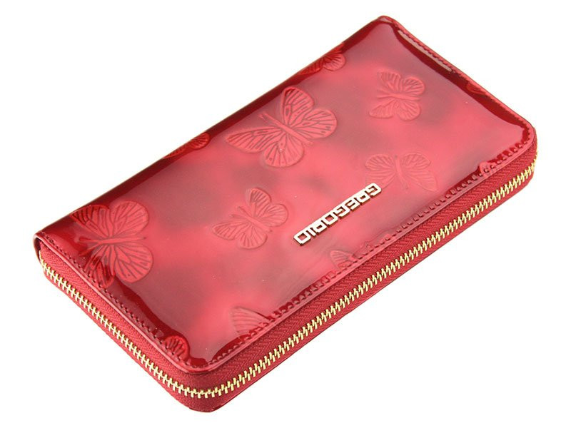 lakk bőr női pénztárcakörbe cipzáras fő rekesz3 db rejtett zseb belül15 db kártyatartó belül1 db fényképtartó belül2 rekeszes papírpénztartó belül1 cipzáras aprótartó belülSzé:19,5 x Ma:10 x Mé:3 cm