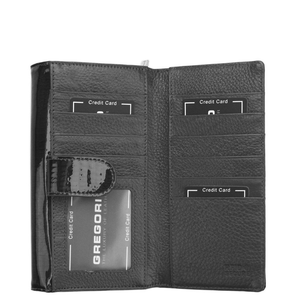 Gregorio GF-121 fekete hátul kártyatartós lakk bőr női pénztárca