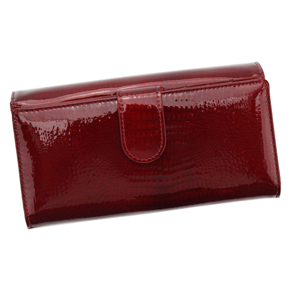 lakk bőr női pénztárcaezüst feliratpatentos fő rekesz2 rekeszes belülcipzáras osztott aprótartó1 db rejtett zseb belül5 db kártyatartó belül1 db fényképtartó belülhátulján patentos kártyatartó2 db rejtett zseb belül10 db kártyatartó belül1 db fényképtartó belülRFID védelemSzé:19 x Ma:11 x Mé:3 cm