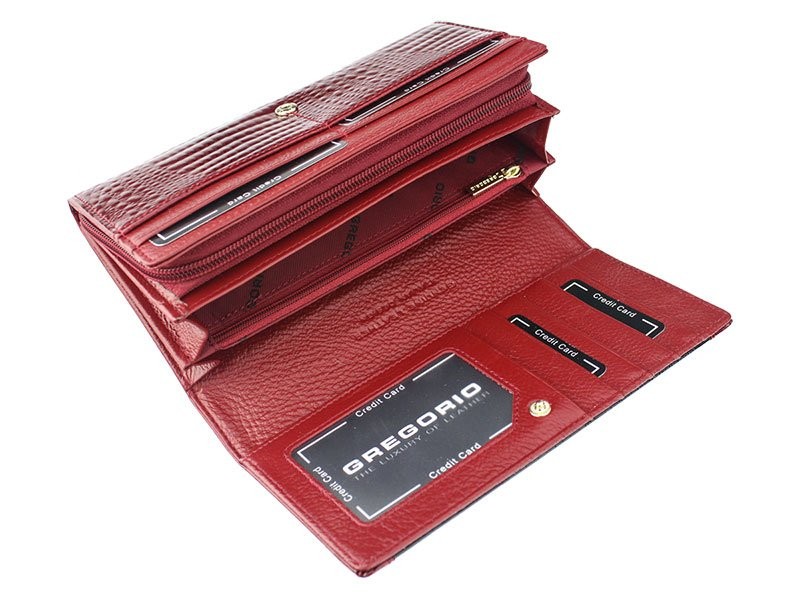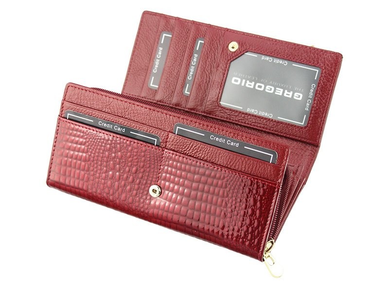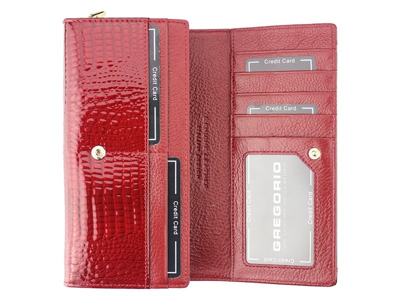 lakk bőr női pénztárcapatentos fő rekesz2 rekeszes belülcipzáras osztott aprótartó1 db cipzáras zseb1 db rejtett zseb belül8 db kártyatartó belül1 db fényképtartó belülRFID védelemSzé:19 x Ma:10 x Mé:3,5 cm